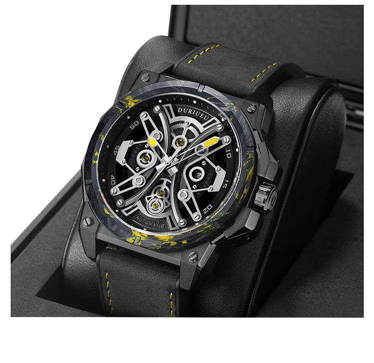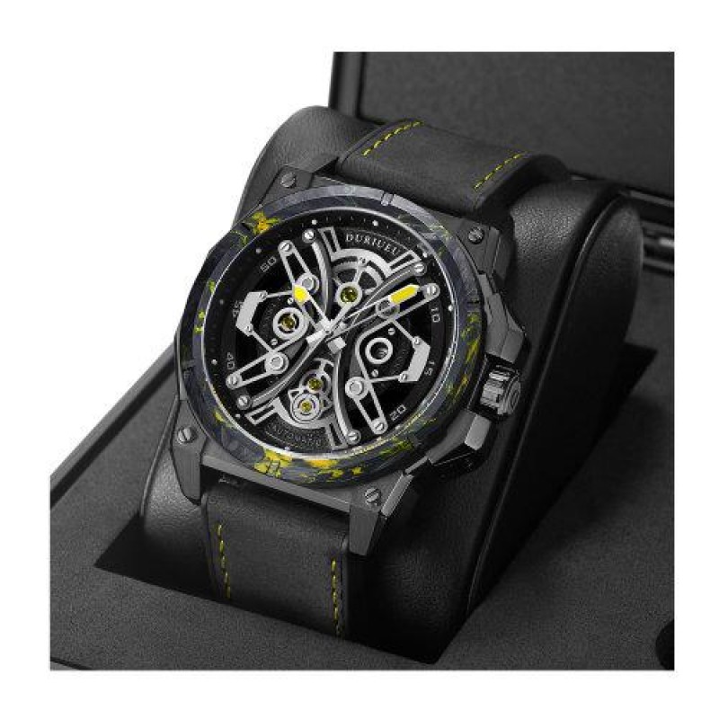 DURIUEU/杜里手表 进口机芯自动机械表商务时尚潮流男士腕表 黑皮带黄线黑盘黄钻 DU-18003MEXEEEY2 全球联保