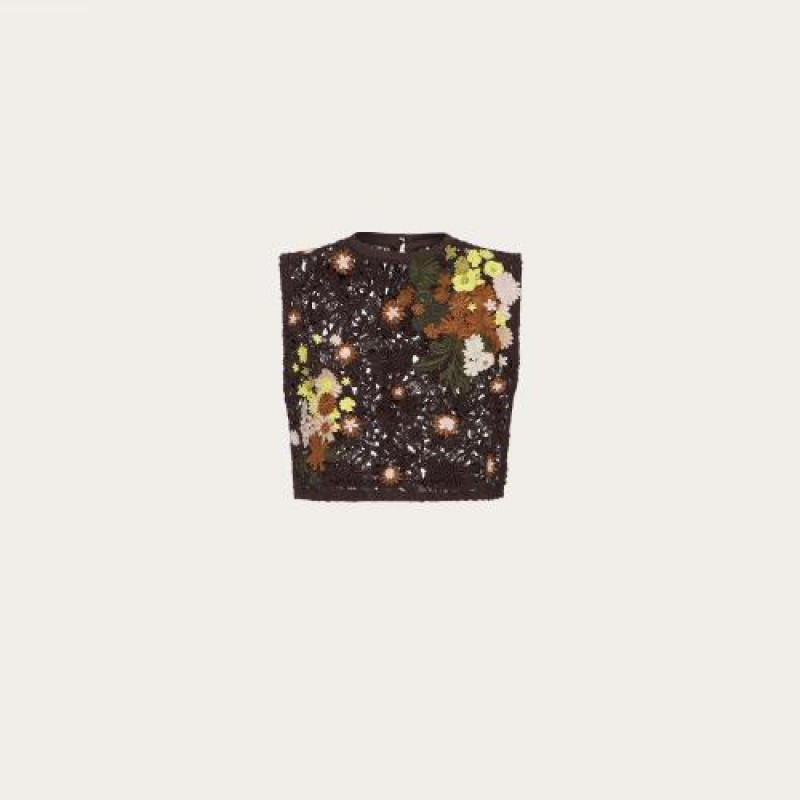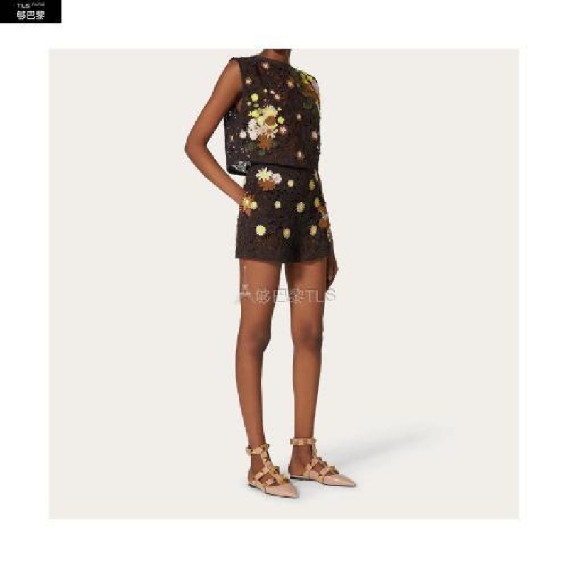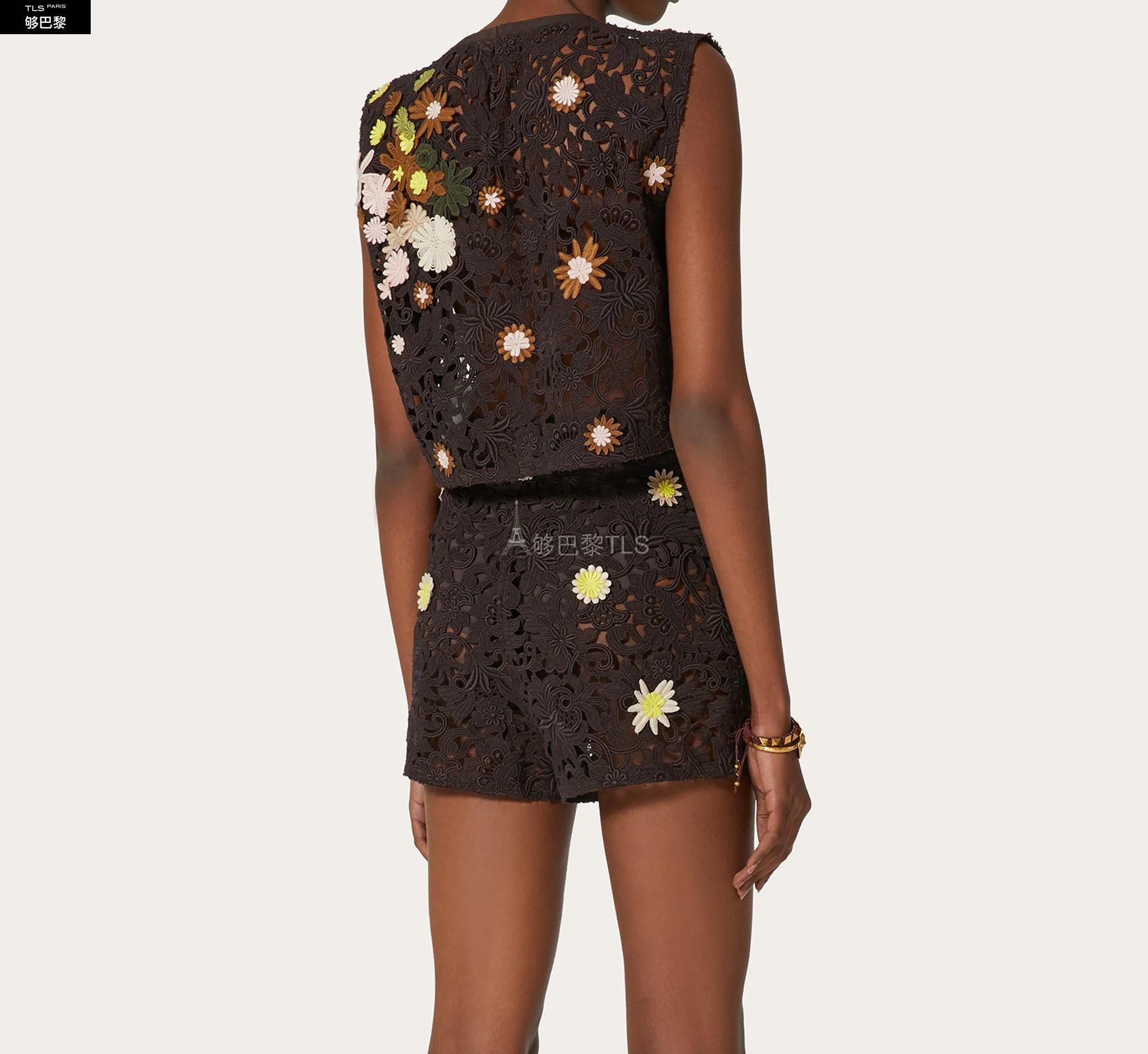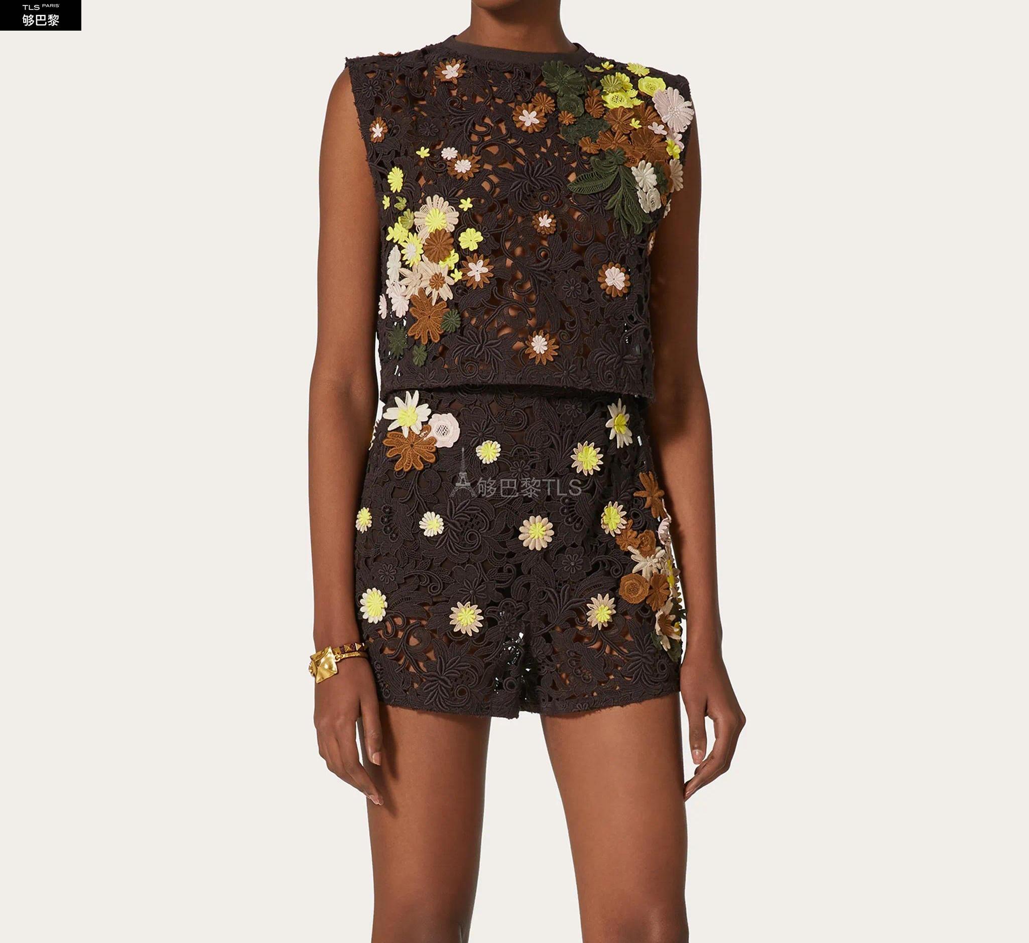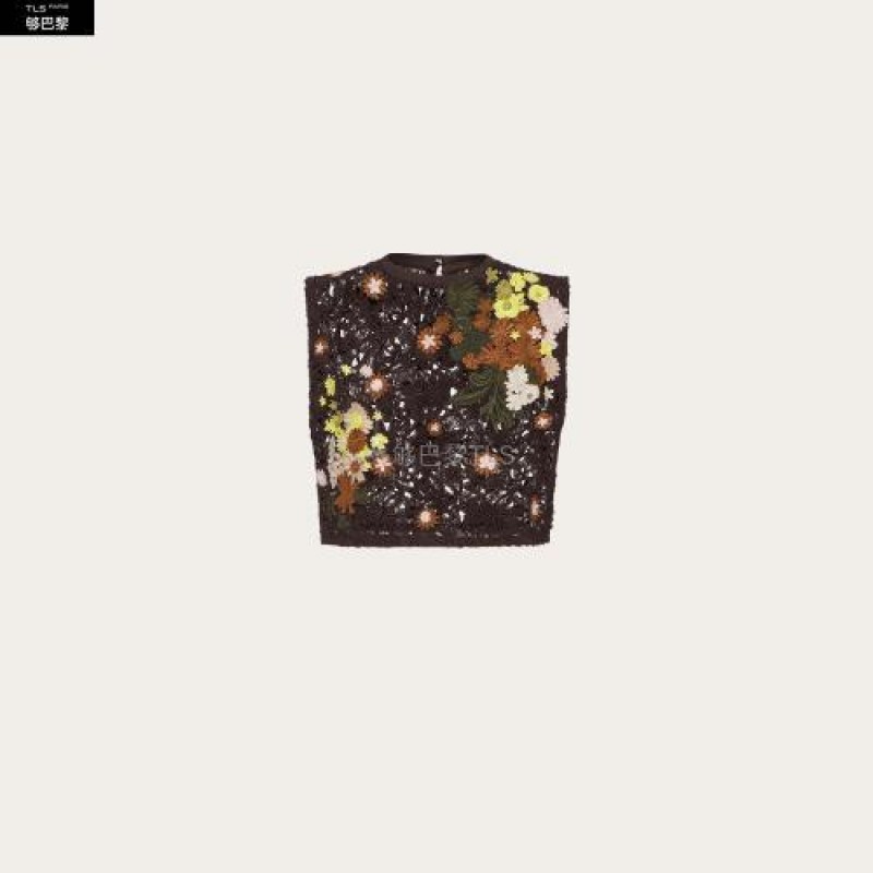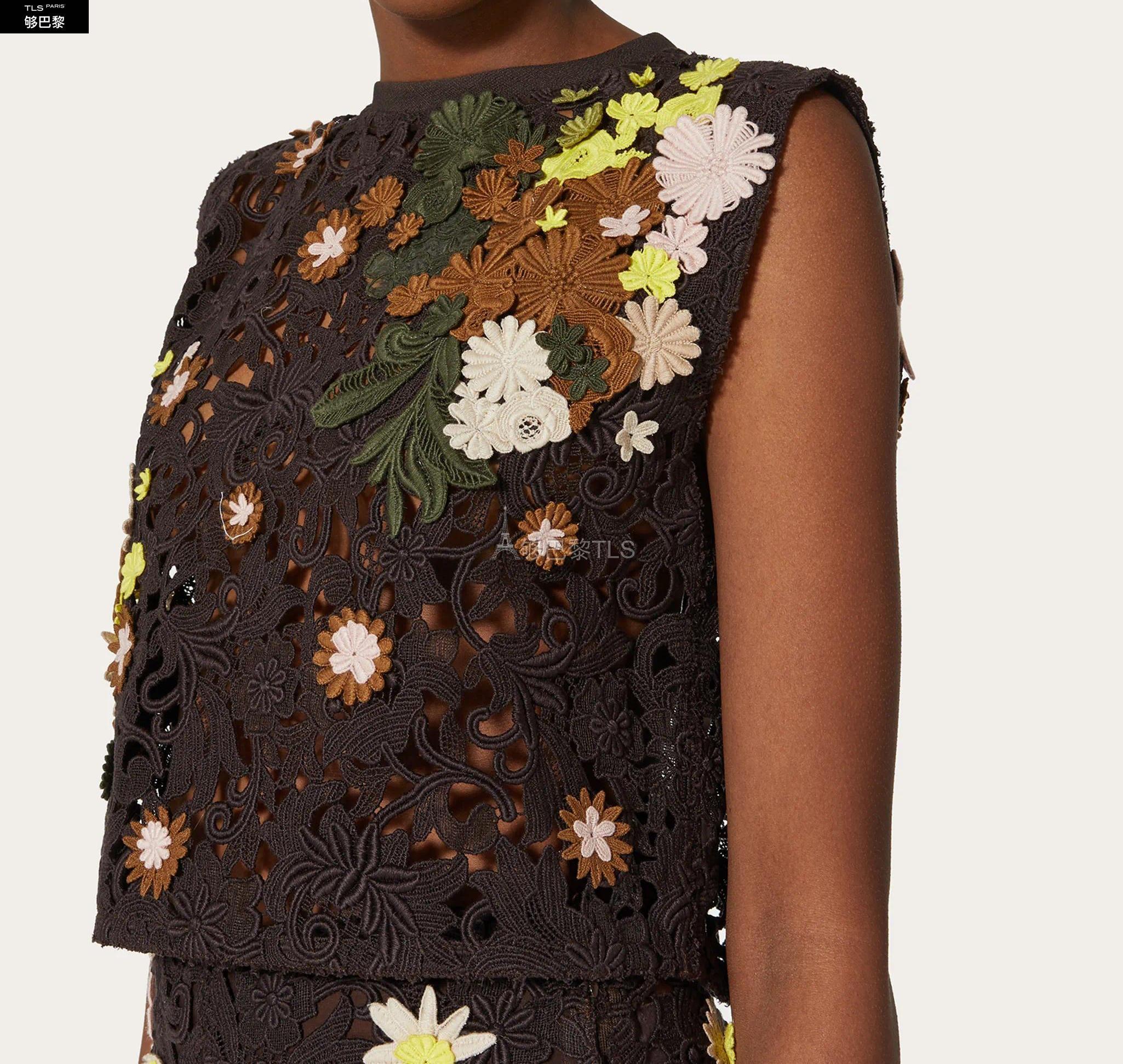【包邮包税】 VALENTINO华伦天奴 21年春夏 女士 针织衫 TOP EN MACRAMé FLEURI BRODé VB0AE5X03QGW39 预定商品1-3周发货