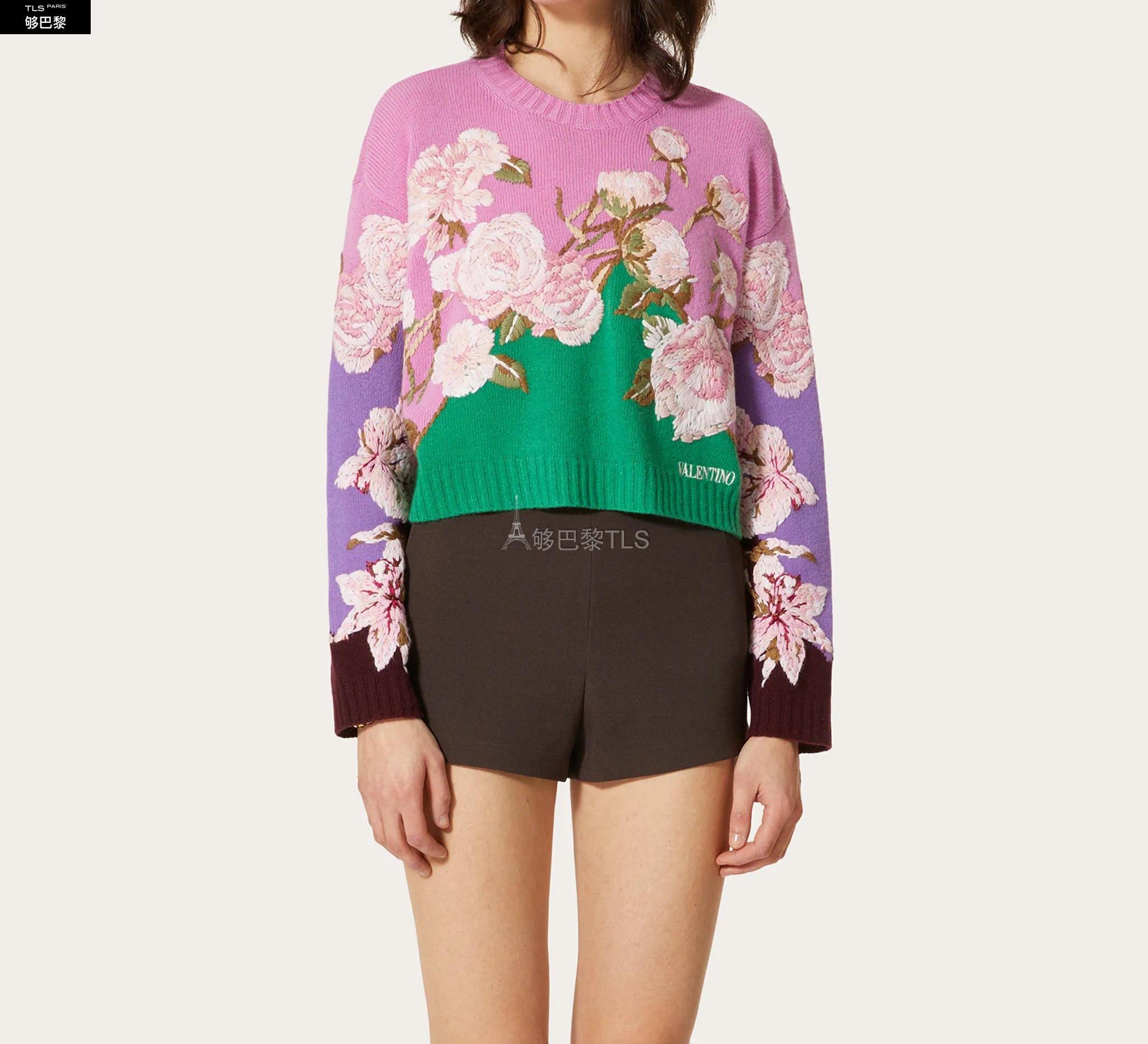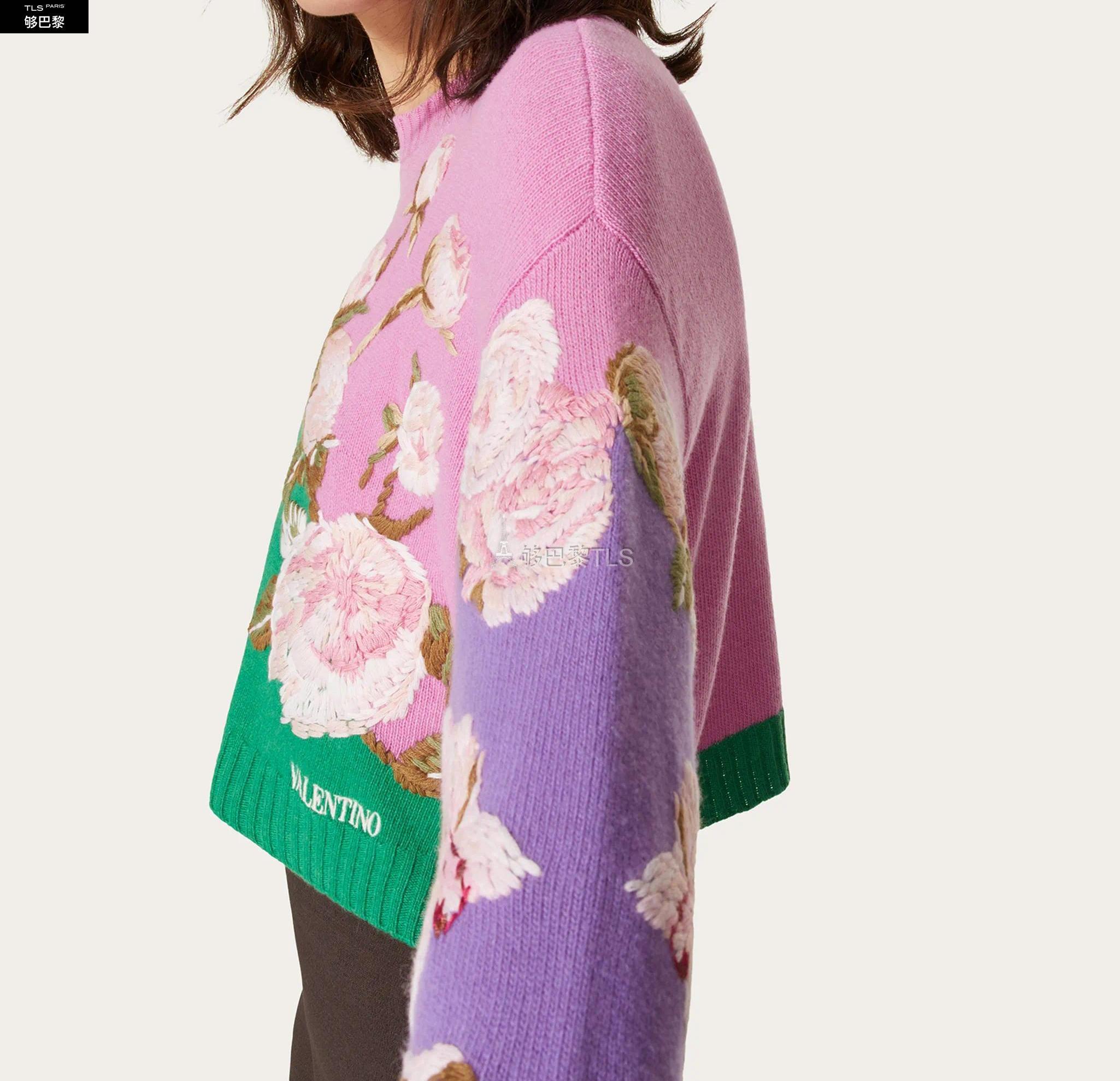 • 【包邮包税】 VALENTINO华伦天奴 21年春夏 女士 针织衫 PULL EN LAINE ET CACHEMIRE BRODé VB0KCC206F0IR0 预定商品1-3周发货