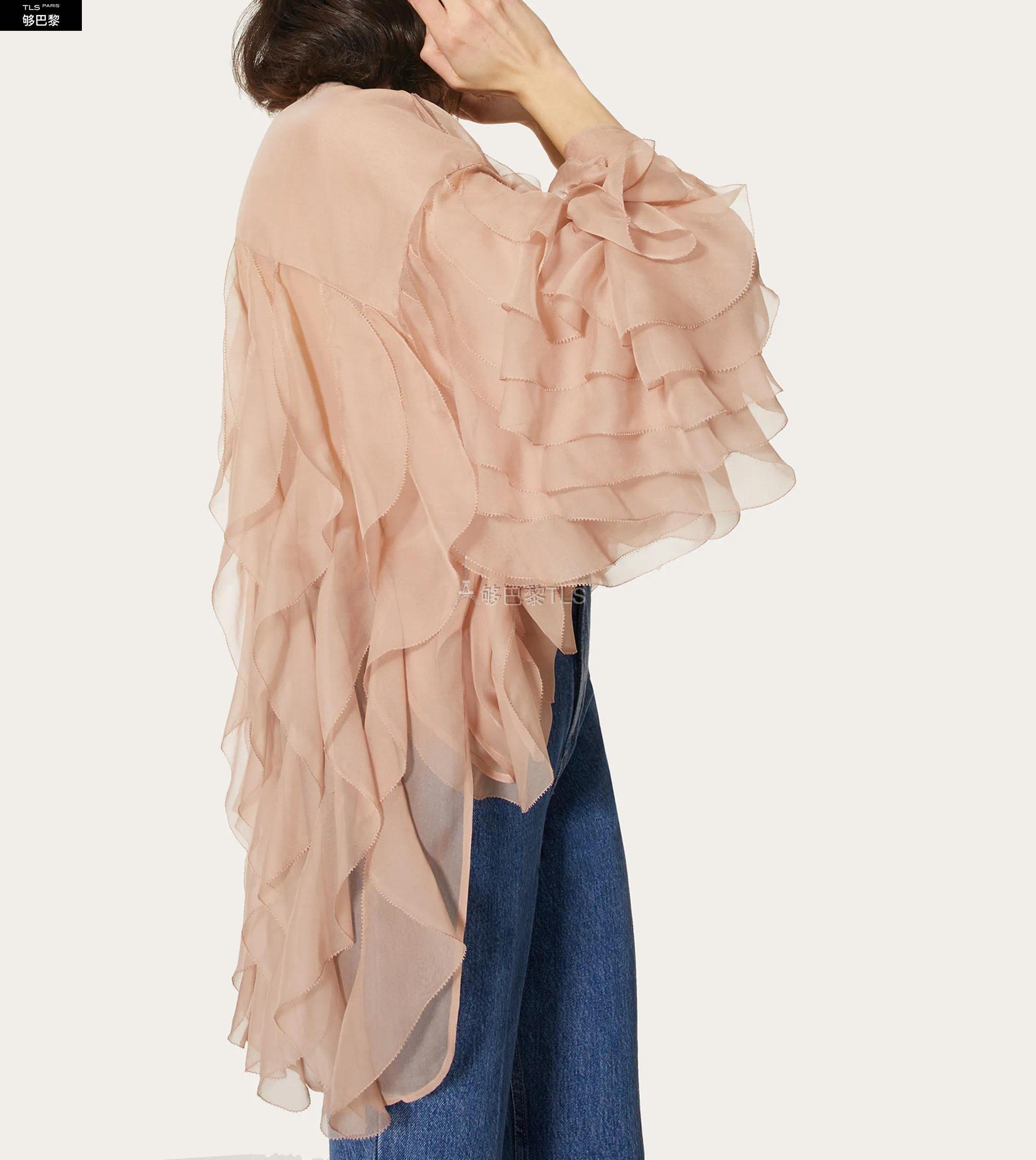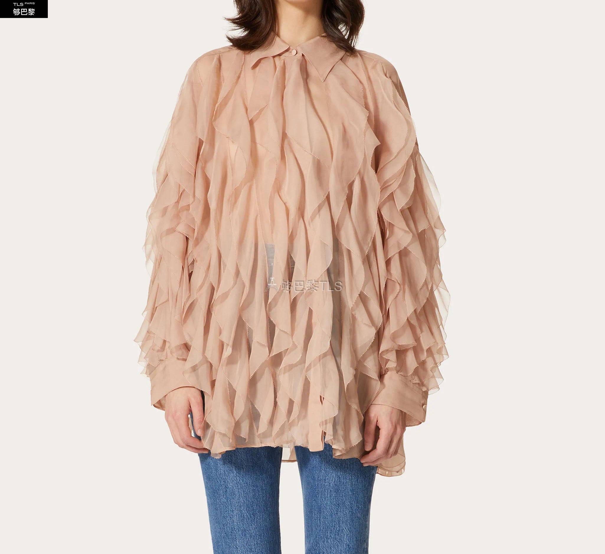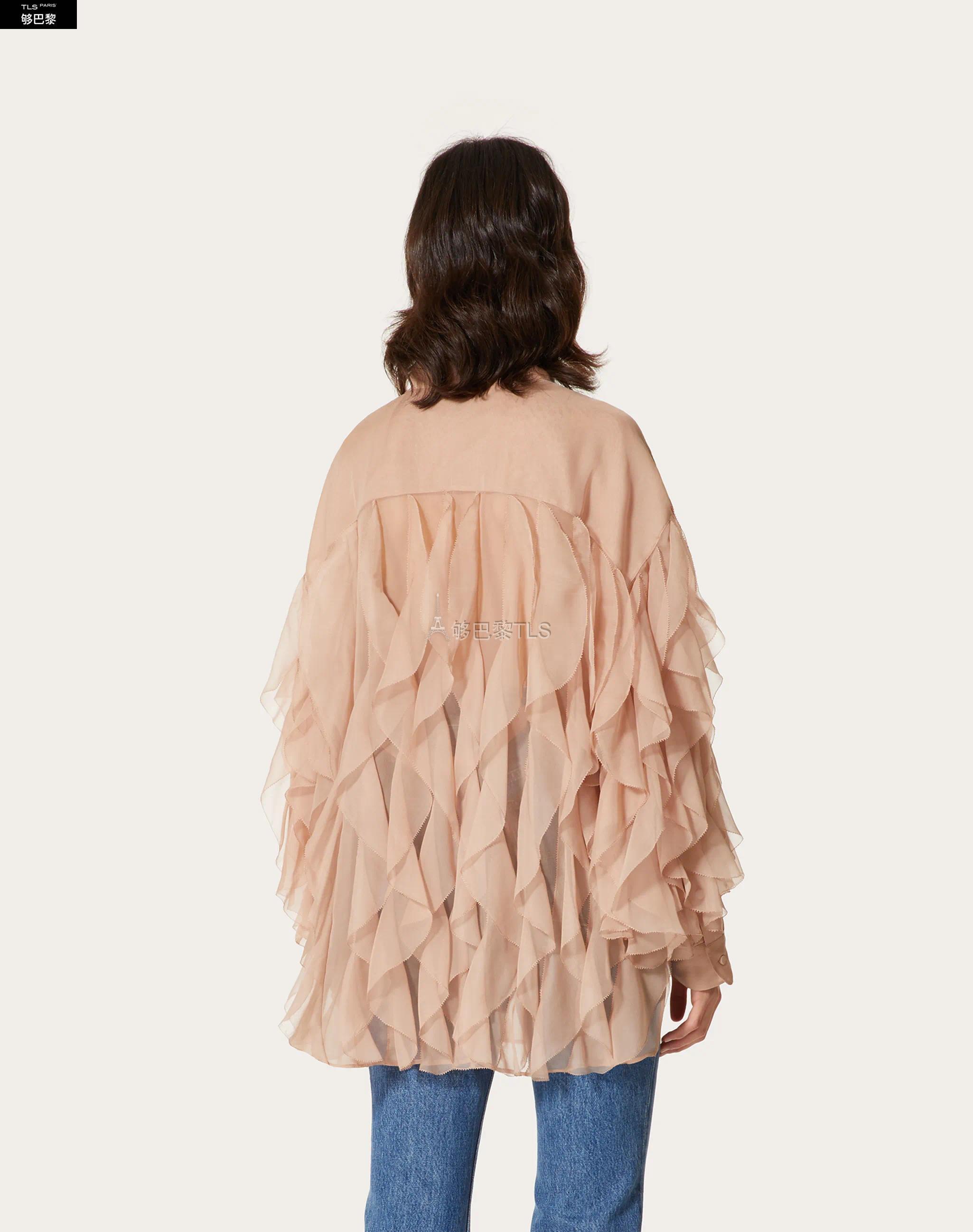 【包邮包税】 VALENTINO华伦天奴 21年春夏 女士 长袖衬衫 CHEMISIER EN MOUSSELINE VB0AB2652UPS69 预定商品1-3周发货