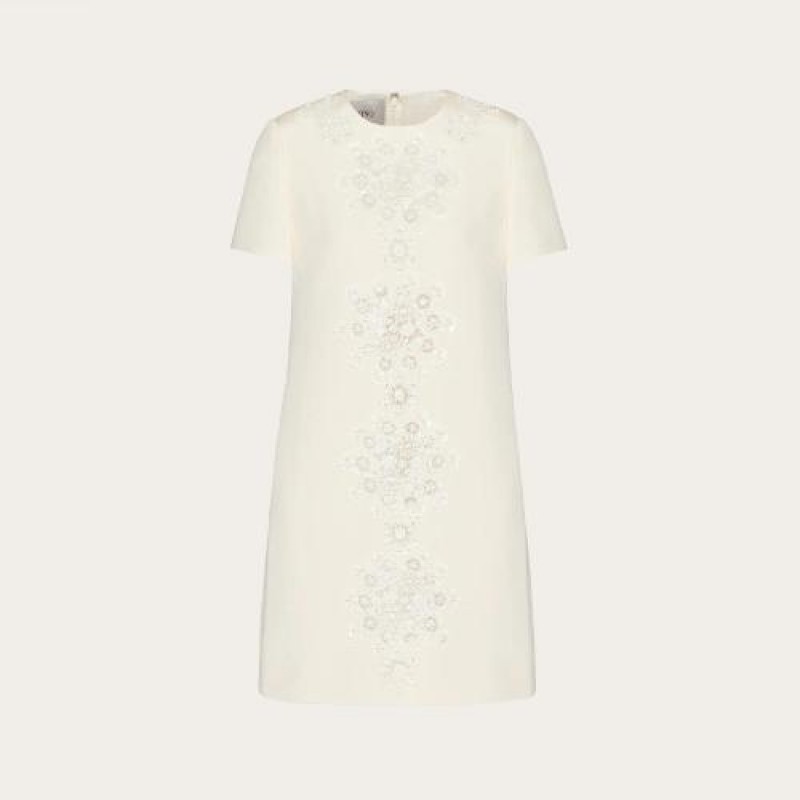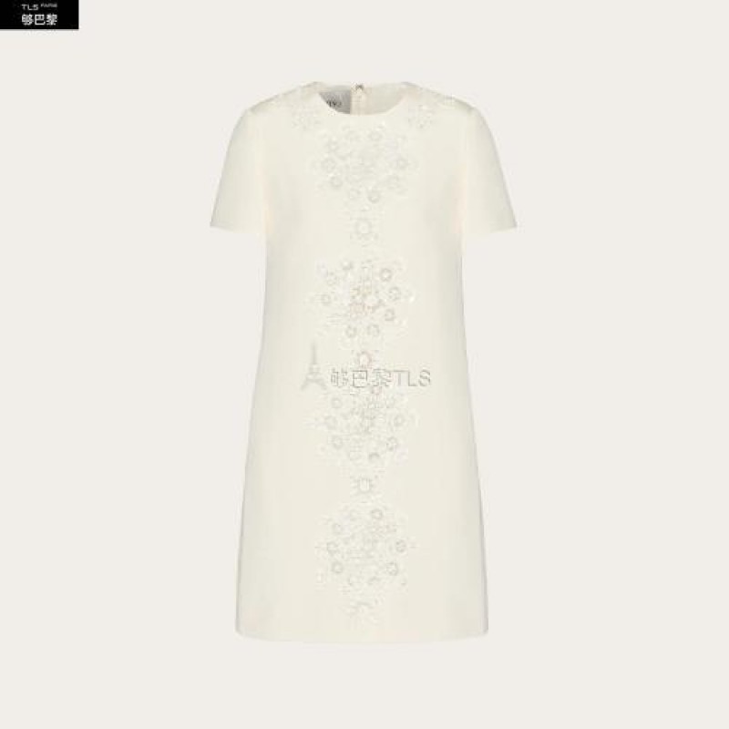 【包邮包税】 VALENTINO华伦天奴 21年春夏 女士 连衣裙 ROBE EN CREPE COUTURE STRETCH BRODé VB0VA*w*VH4 预定商品1-3周发货