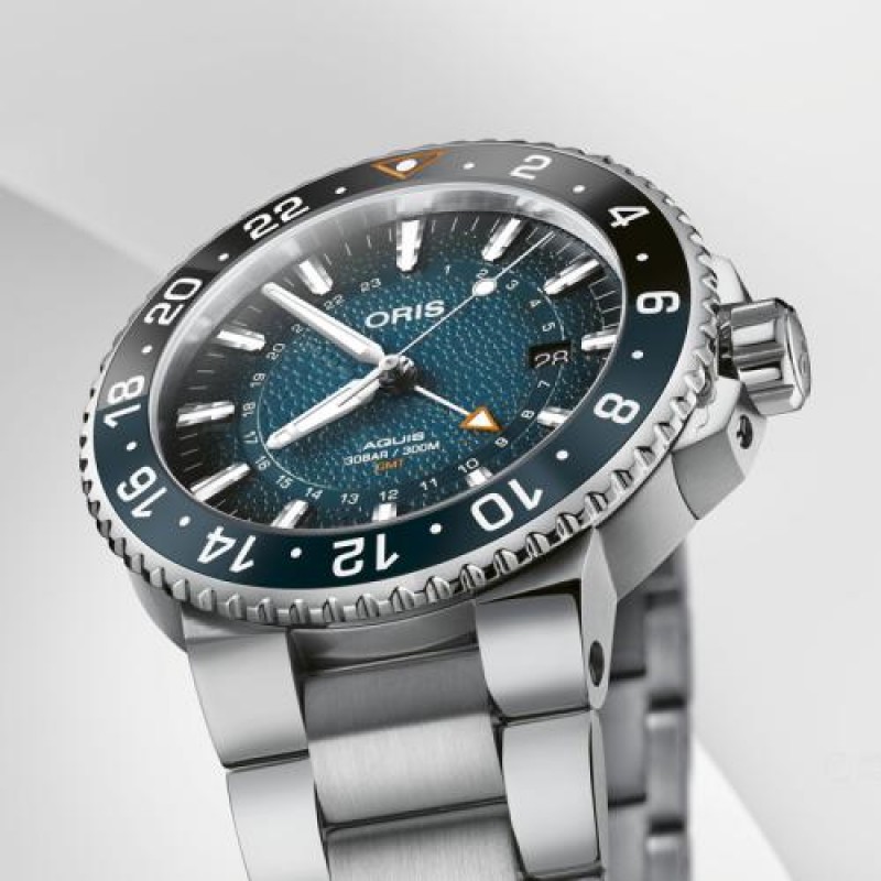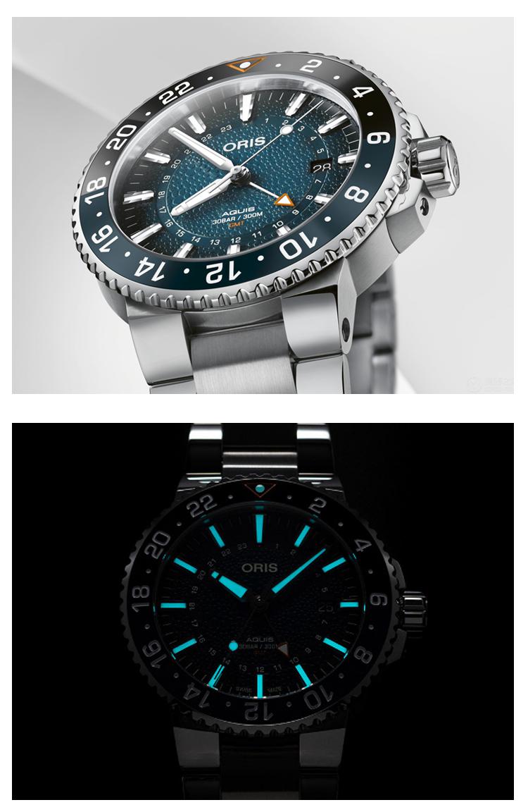 Oris/豪利时鲸鲨限量版GMT两地时日历蓝盘自动机械男表79877544175