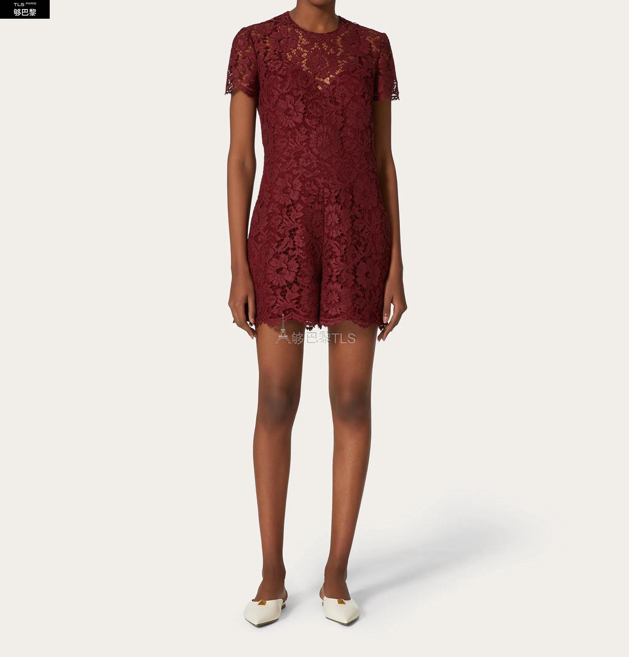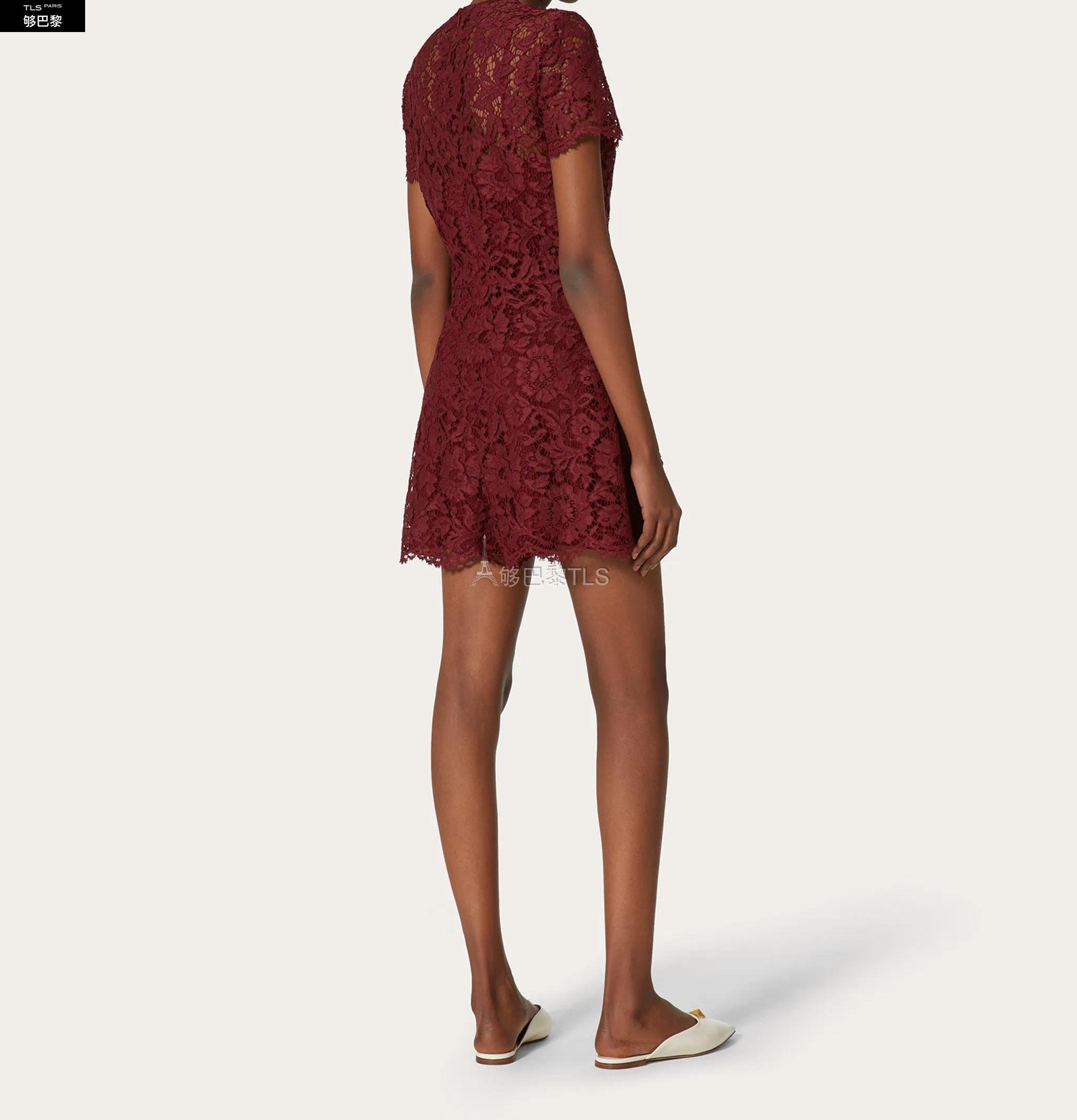 【包邮包税】 VALENTINO华伦天奴 21年春夏 女士 连衣裙 COMBINAISON COURTE EN GUIPURE VB3VE1K51ECGAR 预定商品1-3周发货