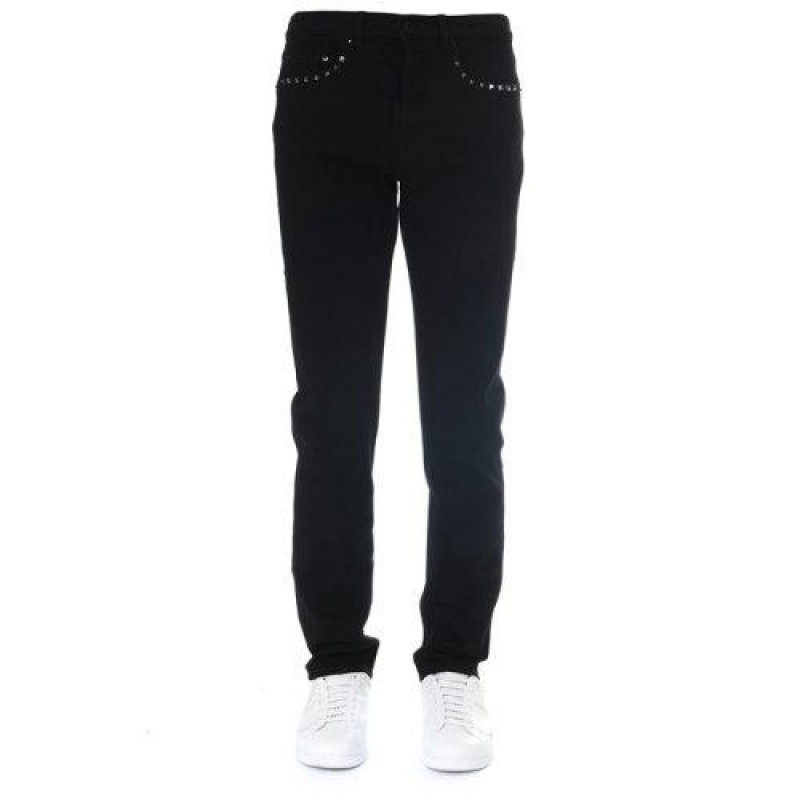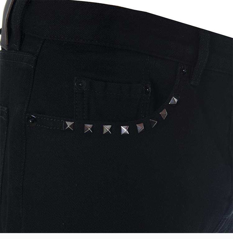 Valentino 华伦天奴 女士 服装 21春夏 黑色铆钉装饰百搭棉质直筒裤休闲裤 女士牛仔裤