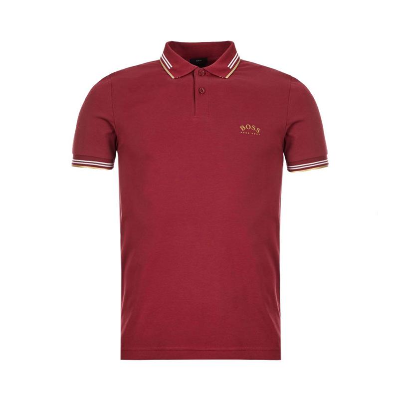 HUGO BOSS/雨果博斯 Paul Curved系列 男士 深红色 短袖POLO-T恤 50412675653