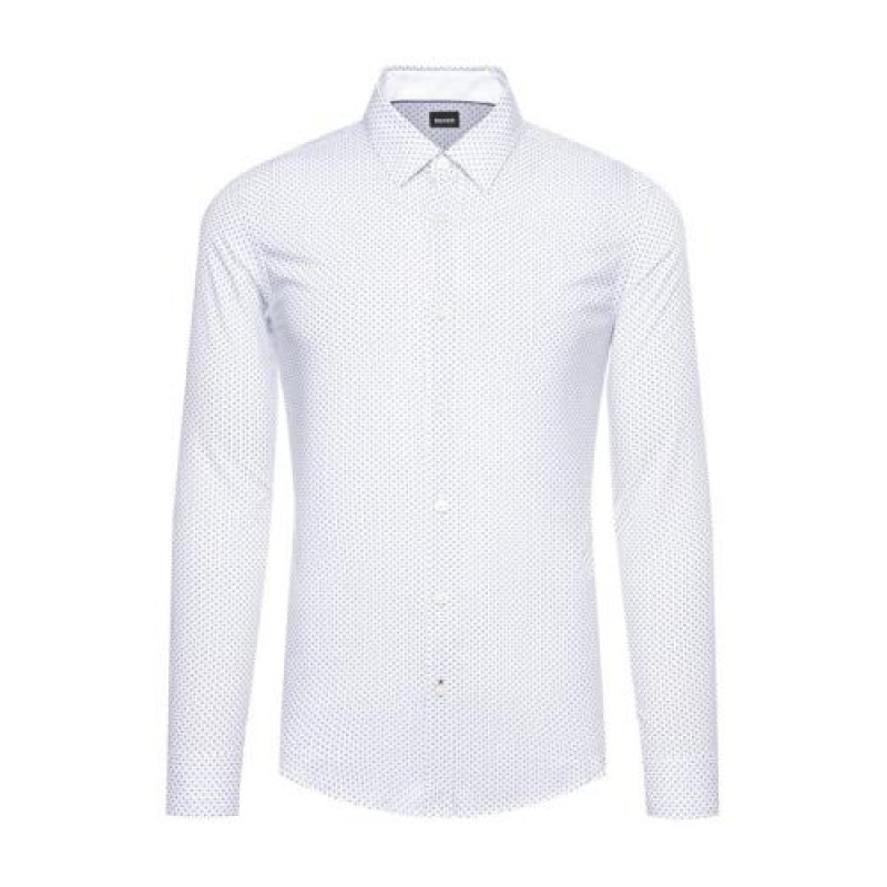 HUGO BOSS/雨果博斯 Ronni_53 男士 白色波点 长袖衬衫 50427898405