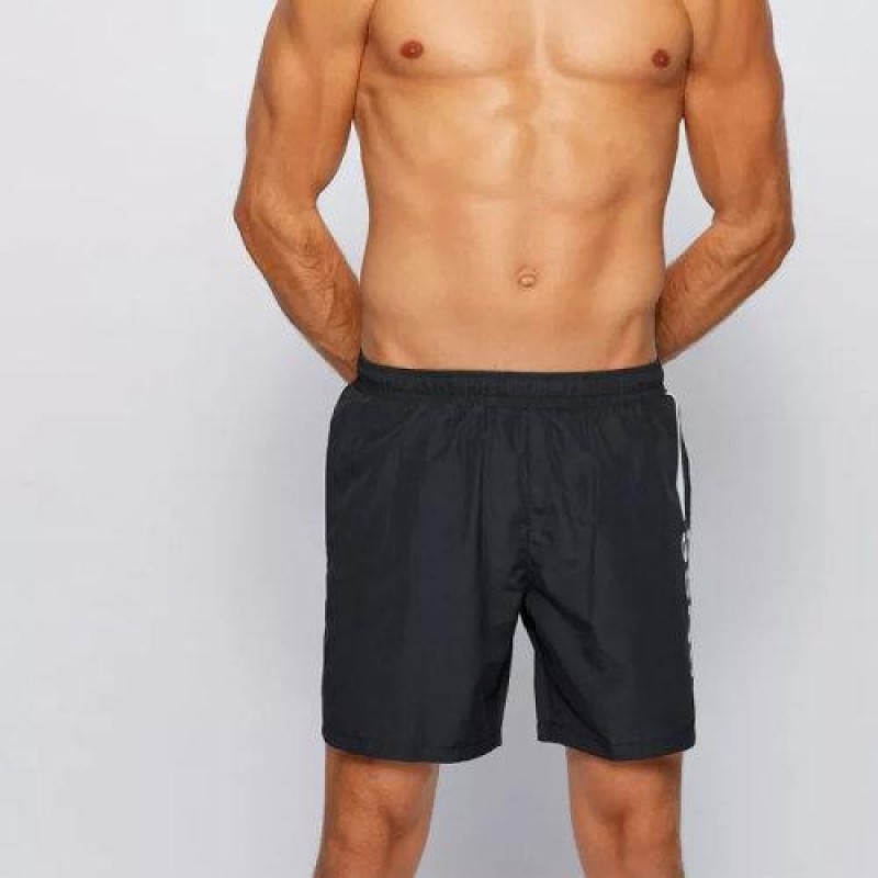 HUGO BOSS/雨果博斯【21春夏】男士黑色微标印花饰尼龙休闲运动沙滩裤短裤【爆款主推现货】