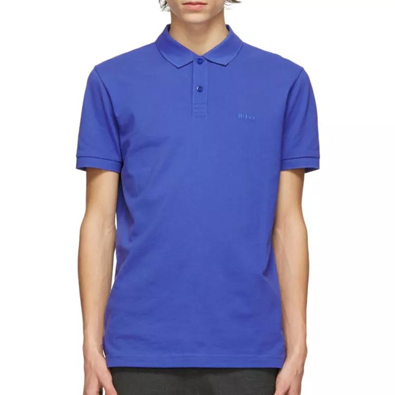 HUGO BOSS/雨果博斯【21春夏】男士蓝色刺绣字母微标饰棉质短袖POLO衫【现货】