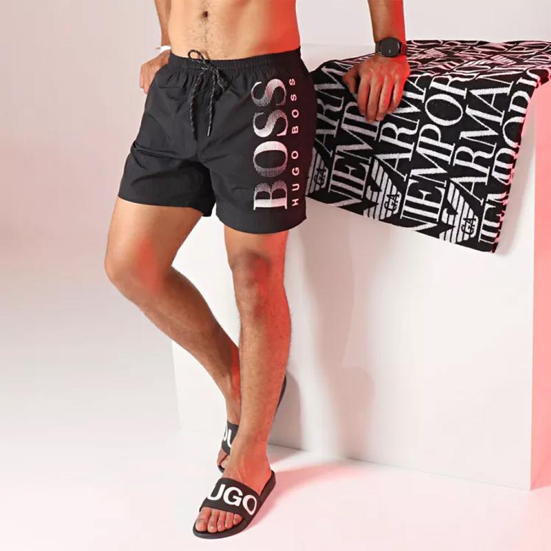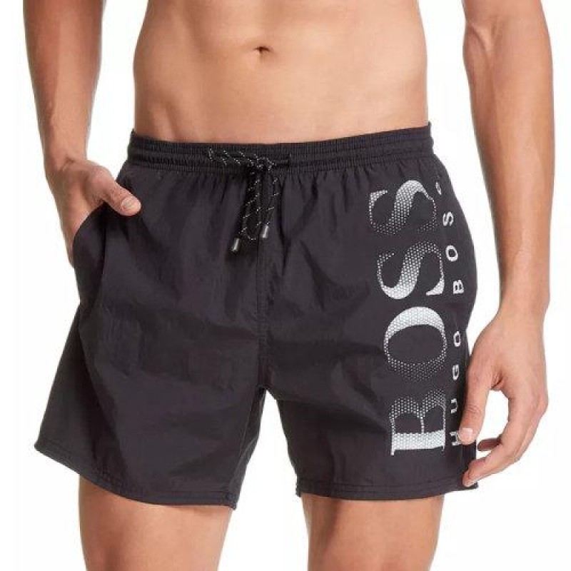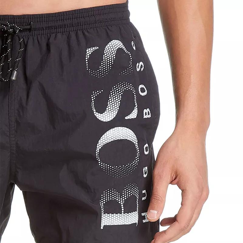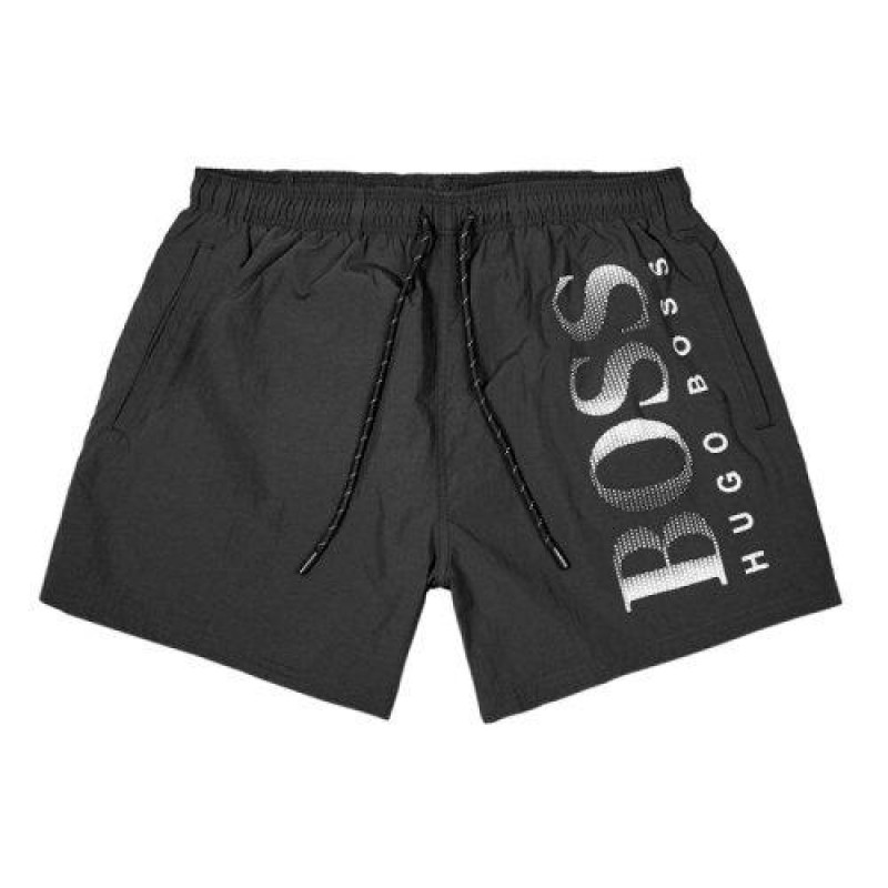 HUGO BOSS/雨果博斯【21春夏】男士黑色微标印花饰棉纶抽绳系带泳裤短裤【爆款主推现货】