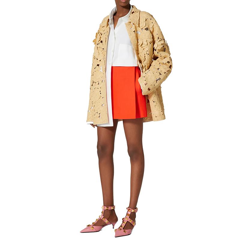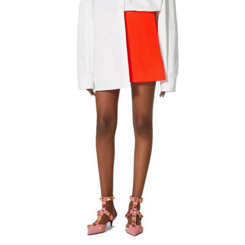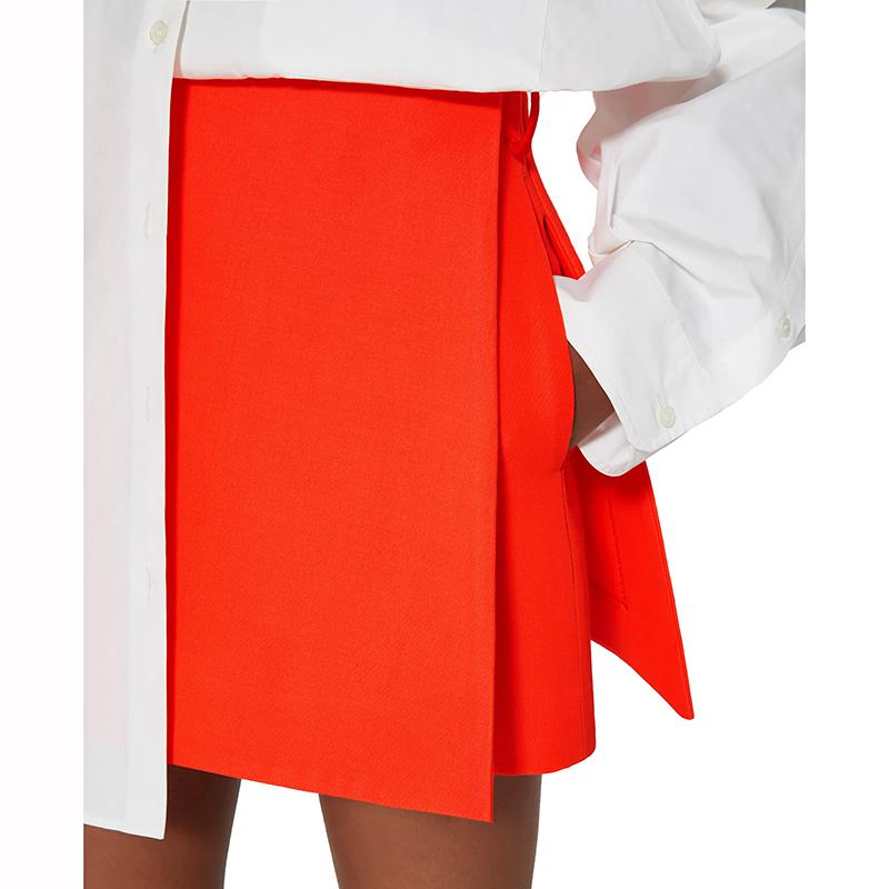 【包税】Valentino/华伦天奴 21年春夏新款 女士荧光橙羊毛弹力缝制绉纱半身裙VB0RA7P06BSO14