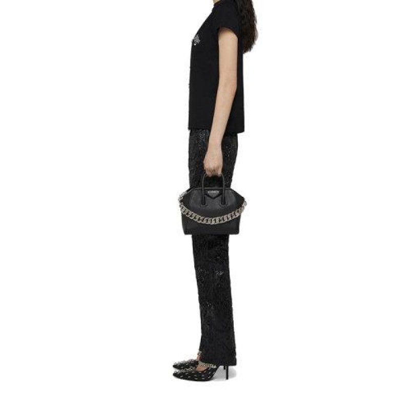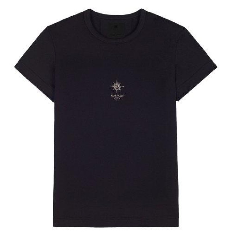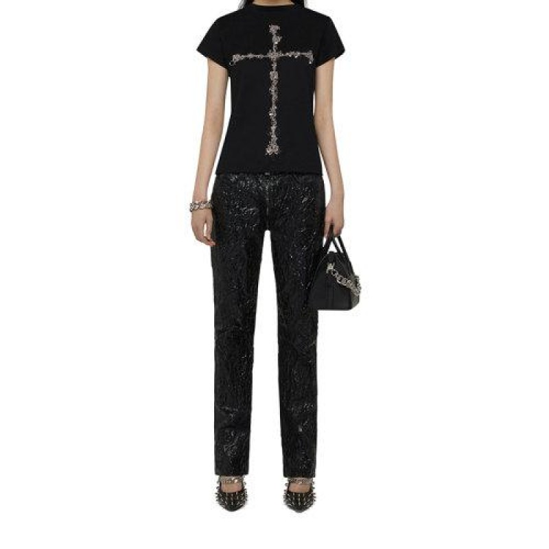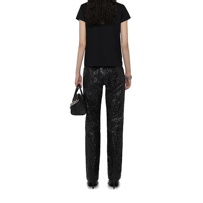 【包税】Givenchy/纪梵希 2021年新款 女士黑色棉质金属质感印花修身T恤BW707Y3Z54-001
