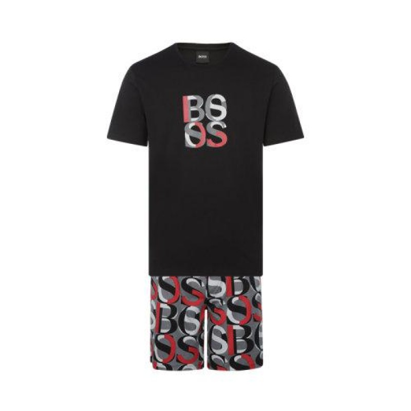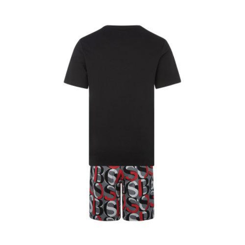 【21春夏新品国内现货】HUGO BOSS/雨果博斯 黑色棉质LOGO装饰男士休闲短袖套装男士其他套装 $164.1 |