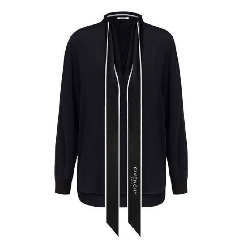 【包税】Givenchy/纪梵希 2021年新款 女士黑色长袖V领 桑蚕丝上衣BW60FG12EH-001