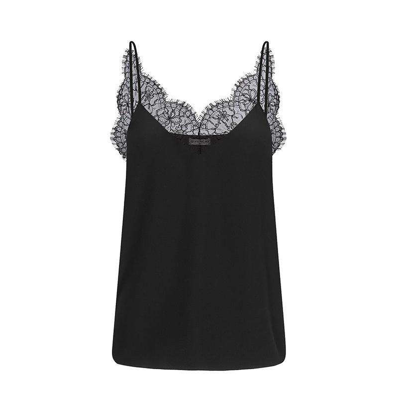 【包税】Givenchy/纪梵希 2021年新款 女士黑色细吊带V领桑蚕丝背心BW60QW12EH-001