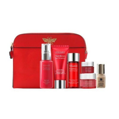Estee Lauder/Estee Lauder New Red Pomegranate Set (30ml for facial cleaning+30ml for water+30ml for lotion+15ml for day cream+7ml for night cream+7ml for dw liquid foundation), a small cosmetic bag with random style (please place an order carefully if the