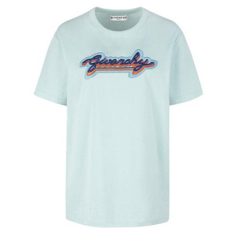【 Tax included 】 Givenchy/Givenchy 2021 Early Spring New Collection with Blue and Red GIVENCHY Plaque Embroidered Light Blue Knitted T-shirt BW707Z3Z4V-451