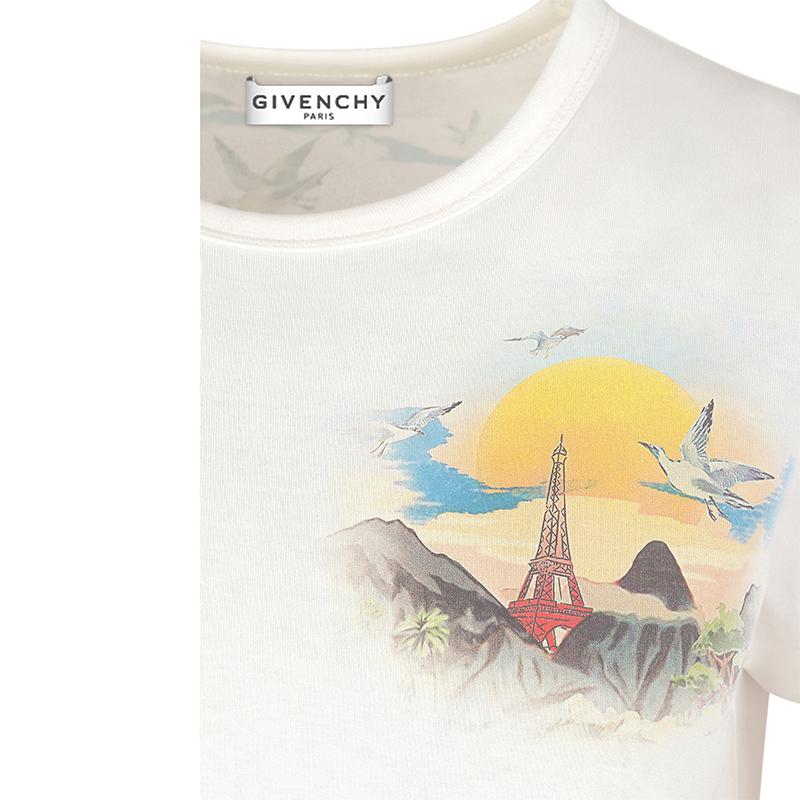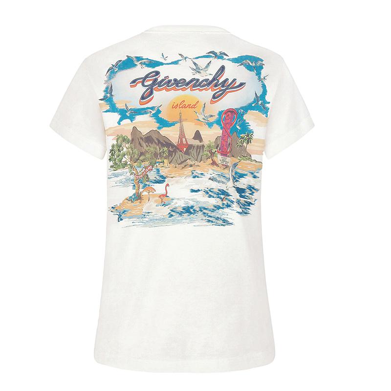 象牙白色针织T恤,胸前和背面饰有多色GIVENCHY Island印花。
