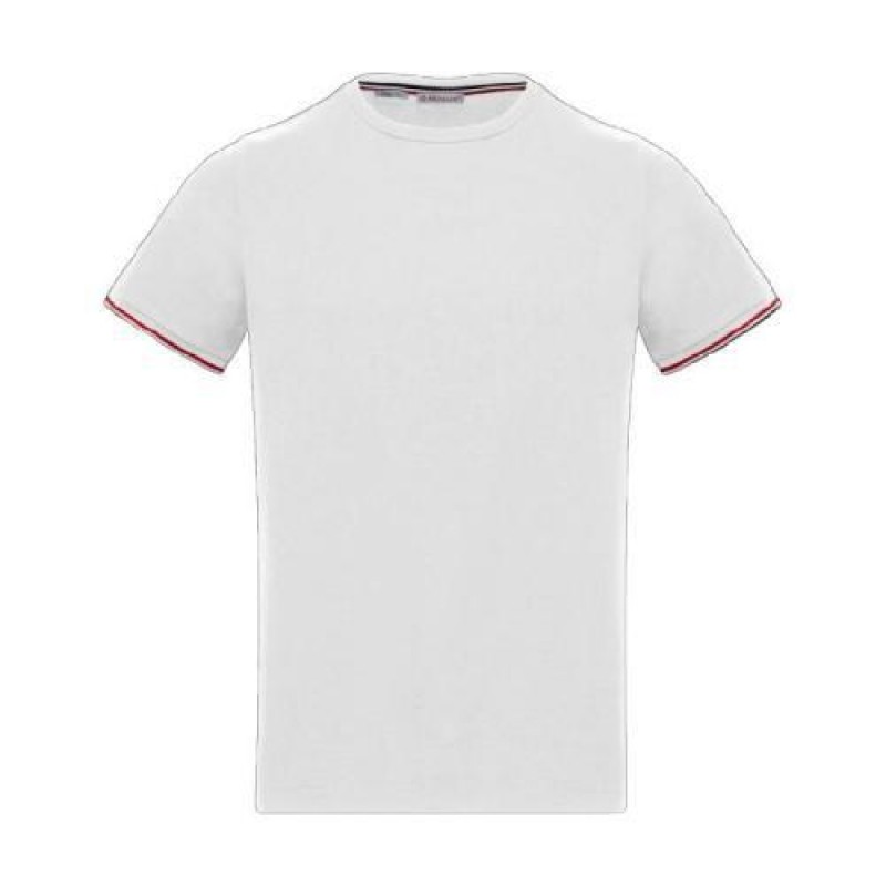 Tee-shirt a manches courtes Jersey de coton extensible Bord des manches en cotes tricoloresLogo Moncler en feutreCoupe tres ajustee