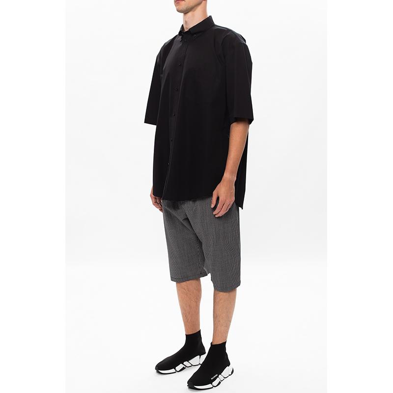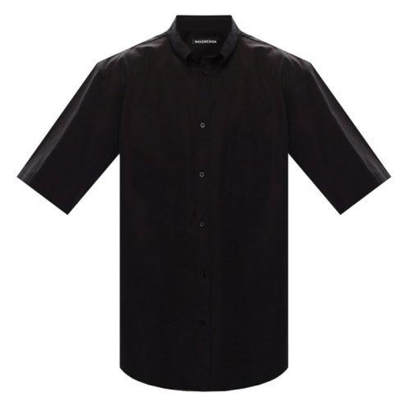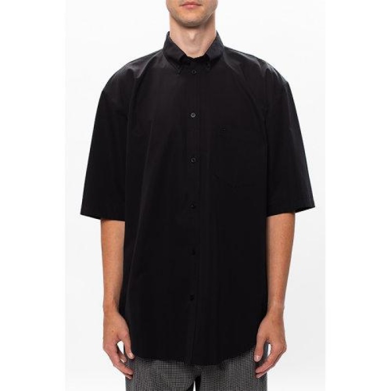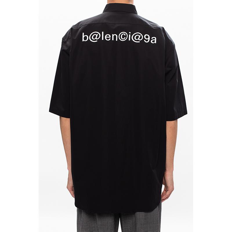 Balenciaga/巴黎世家 21春夏 男士 短袖衬衫 口袋B字刺绣 背面字母胶印 黑色 621912TIM39 1000【现货】