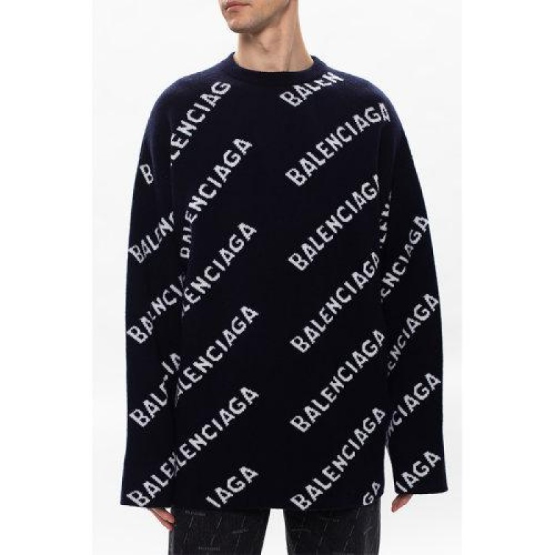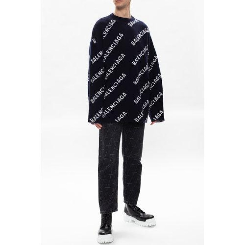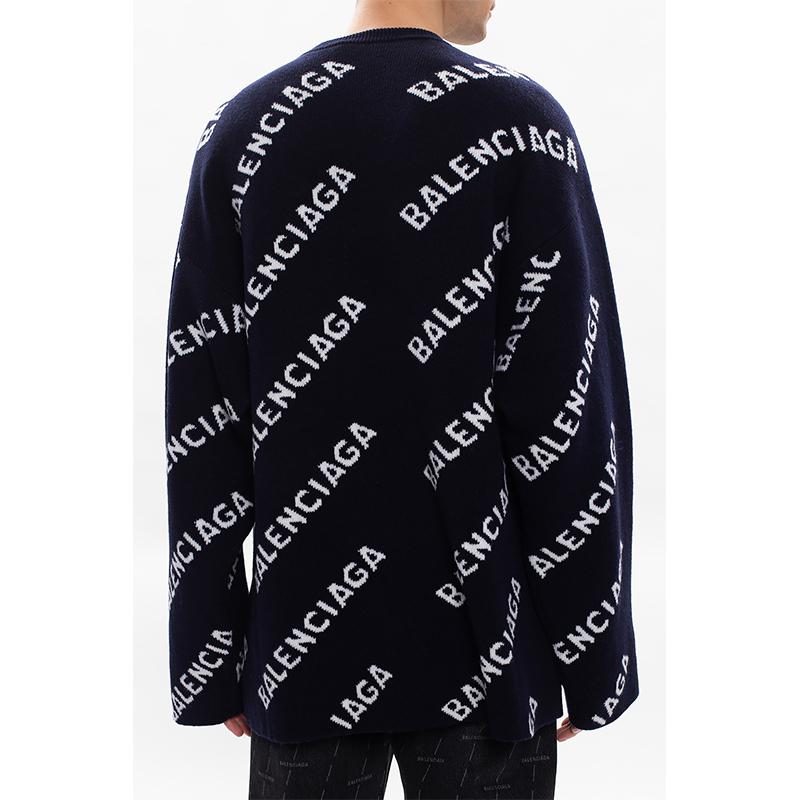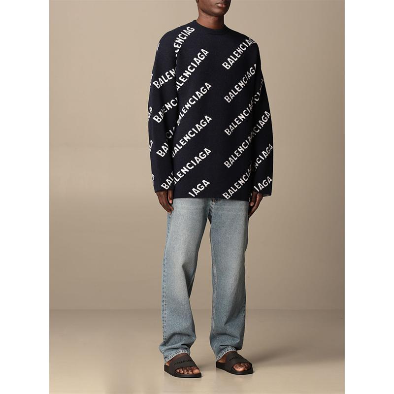 Balenciaga/巴黎世家 21春夏 男士 针织衫/毛衣 字母logo提花 宽松版 蓝色 623283T1567 4177【现货】