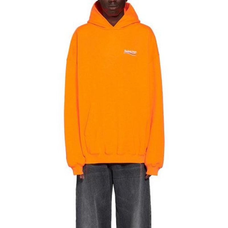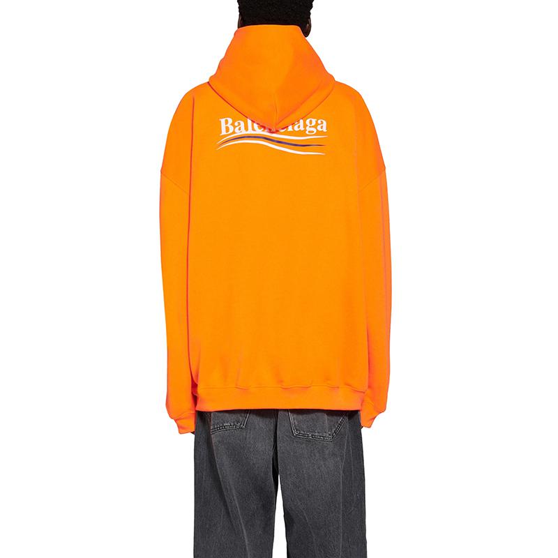 【包税】Balenciaga/巴黎世家 2021年新款 Political Campaign 荧光橙色卷绒男士连帽衫600583TKVE97073