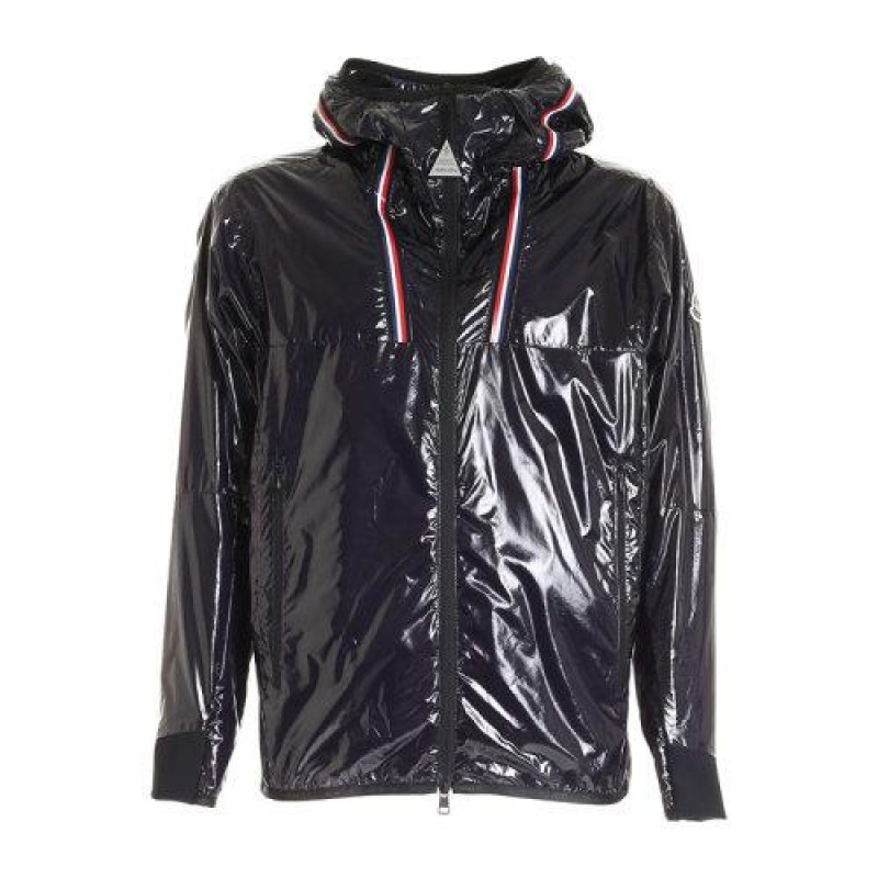 Moncler/蒙克莱 男士 服装 蓝色连帽亮面短款夹克外套 男士夹克