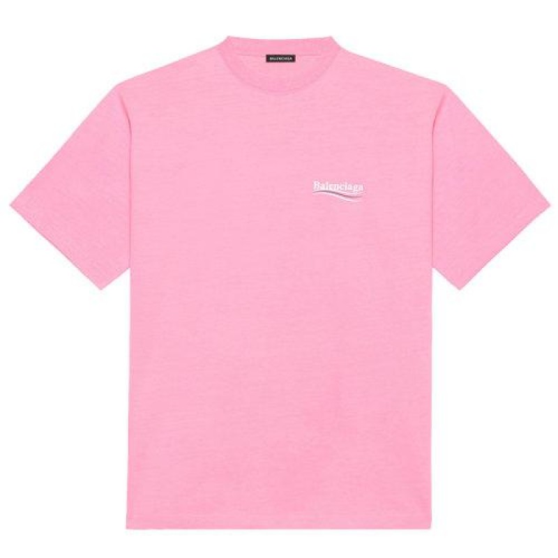【包税】Balenciaga/巴黎世家 2021年新款 男士粉色有机棉大码政治运动T恤641675TJVF75713