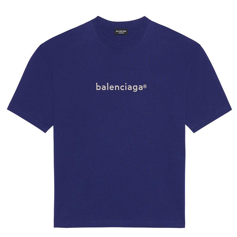 【包税】Balenciaga/巴黎世家 2021年新款 男士蓝色有机棉Copyright Fit中号T恤612966TIV545400