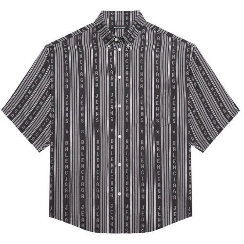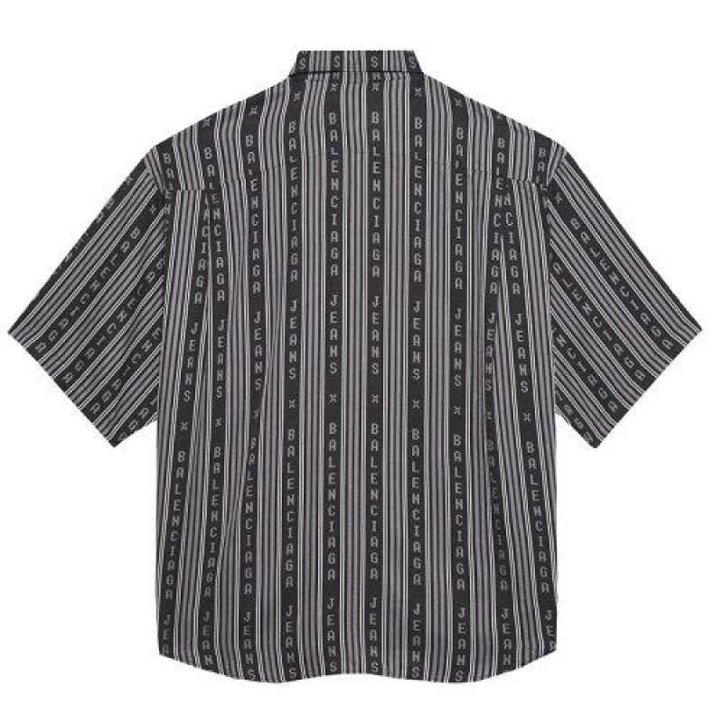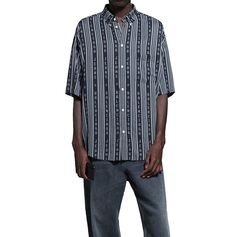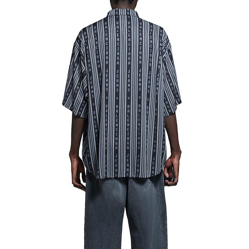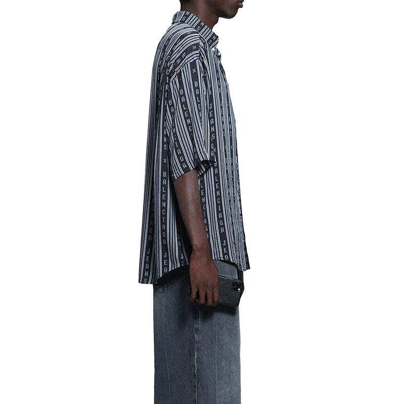 【包税】Balenciaga/巴黎世家 21年春夏新款 男士黑色和灰色条纹粘胶斜纹大码短袖衬衫647354TKL321269