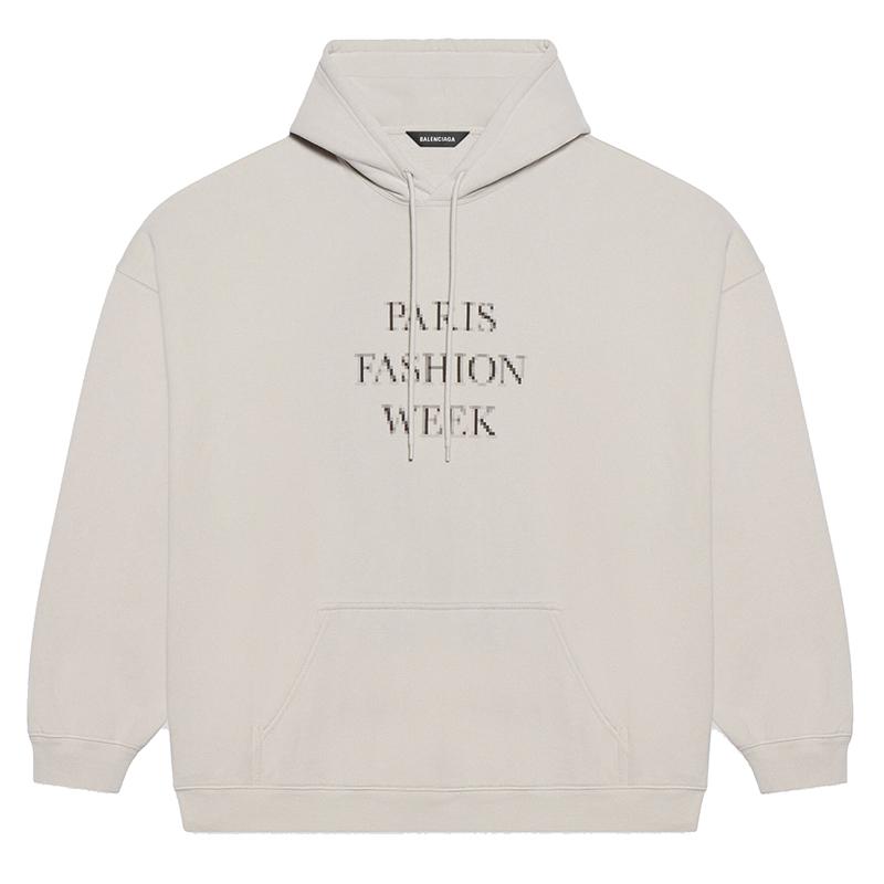 【包税】Balenciaga/巴黎世家 21年春夏新款 Fashion Week Flatground 男士浅灰色和黑色中重抓绒连帽衫651799TKV852984