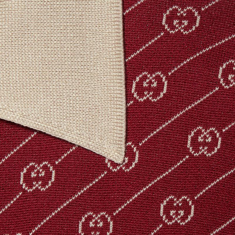 • GG酒红色和象牙色棉和真丝对角提花织物