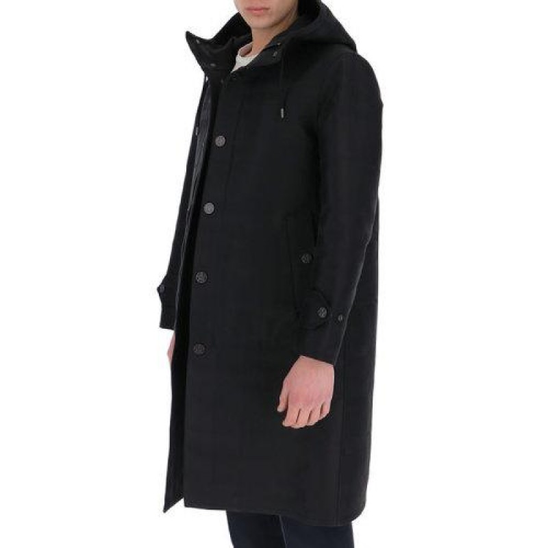 BURBERRY 博柏利 男士 服装 21春夏 黑色连帽拉链长款外套大衣 男士大衣