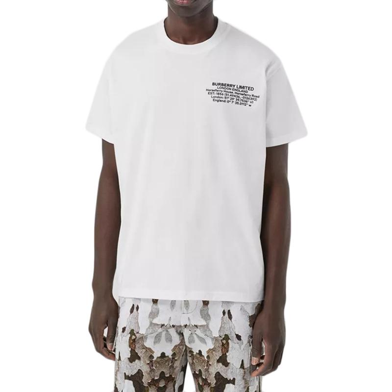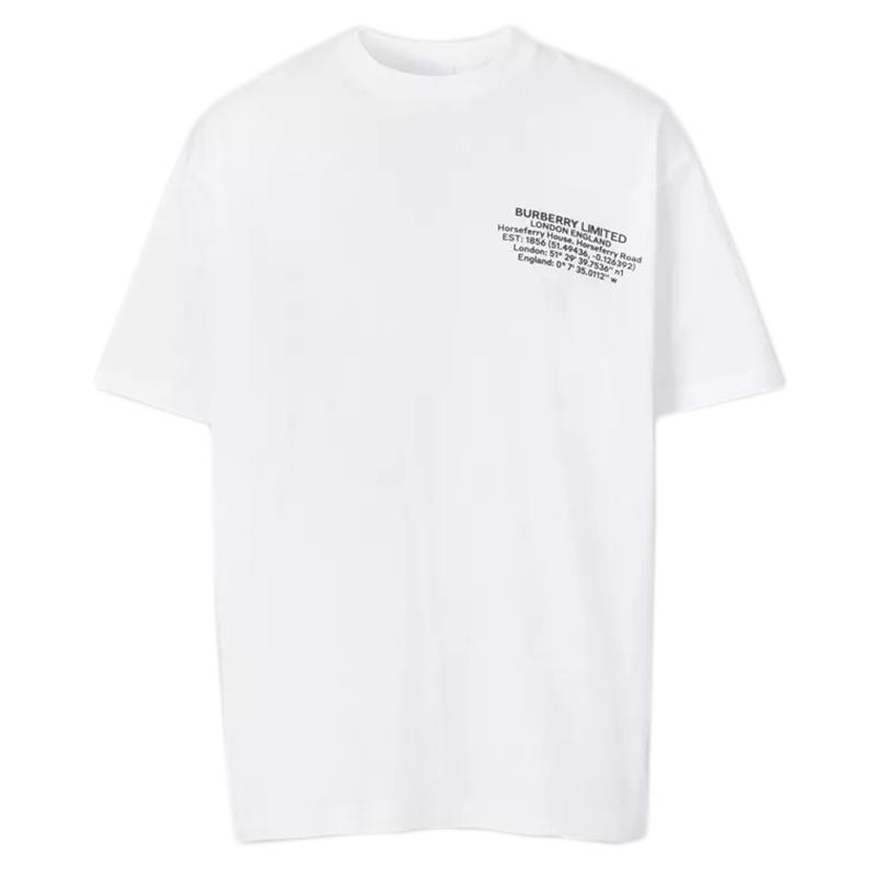 【包税】BURBERRY/博柏利 21年春夏新款 男士白色超大号纯棉地理坐标T恤80427491