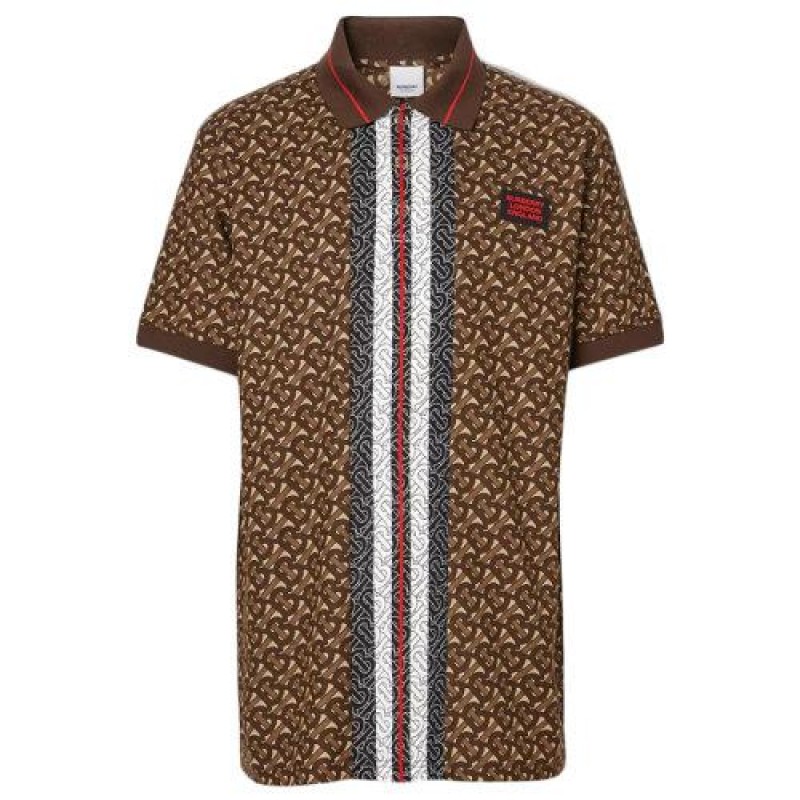 【包税】BURBERRY/博柏利 经典款 男士棕色棉质会标条纹piqué短袖polo衫80182621