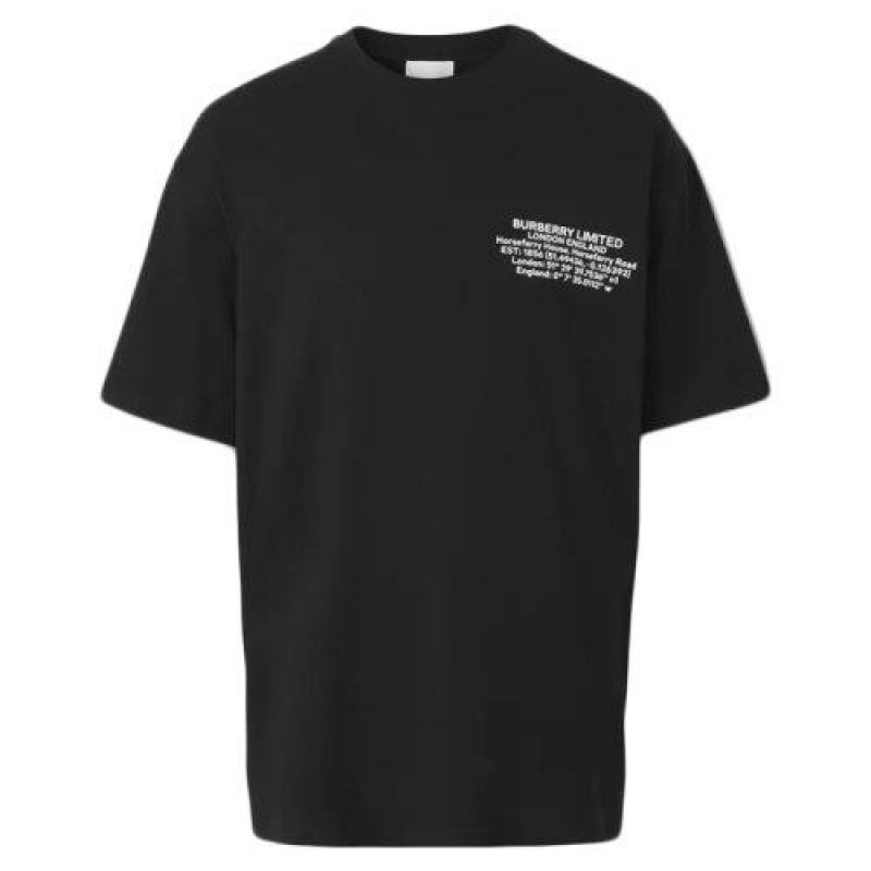 【包税】BURBERRY/博柏利 21年春夏新款 男士黑色超大号纯棉地理坐标T恤80427481