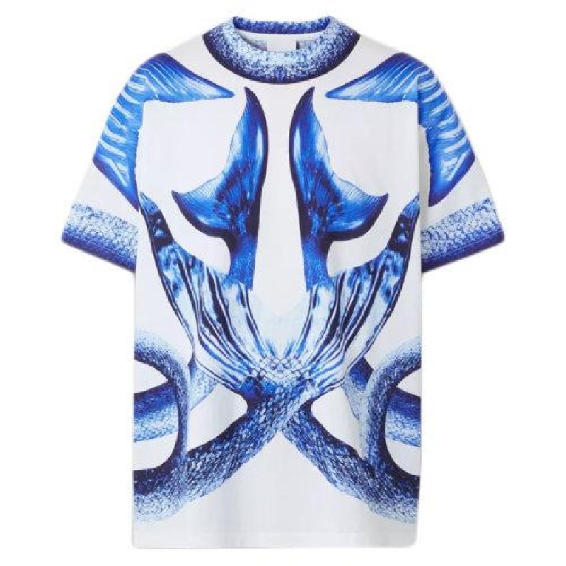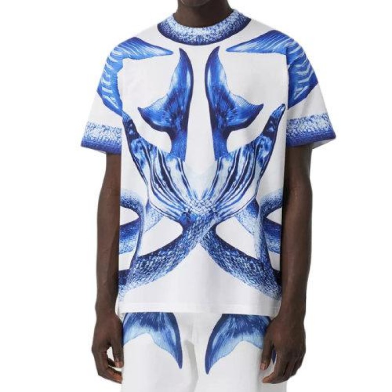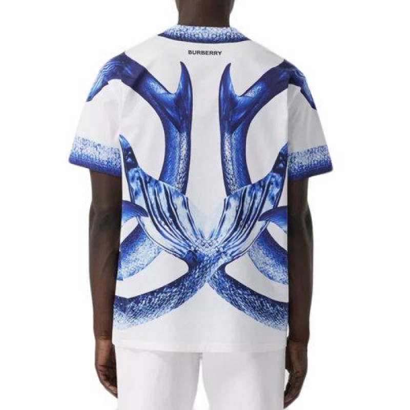 【包税】BURBERRY/博柏利 2021年新款海洋颂歌系列 男士亮蓝色美人鱼尾巴印花棉质超大T恤80406861