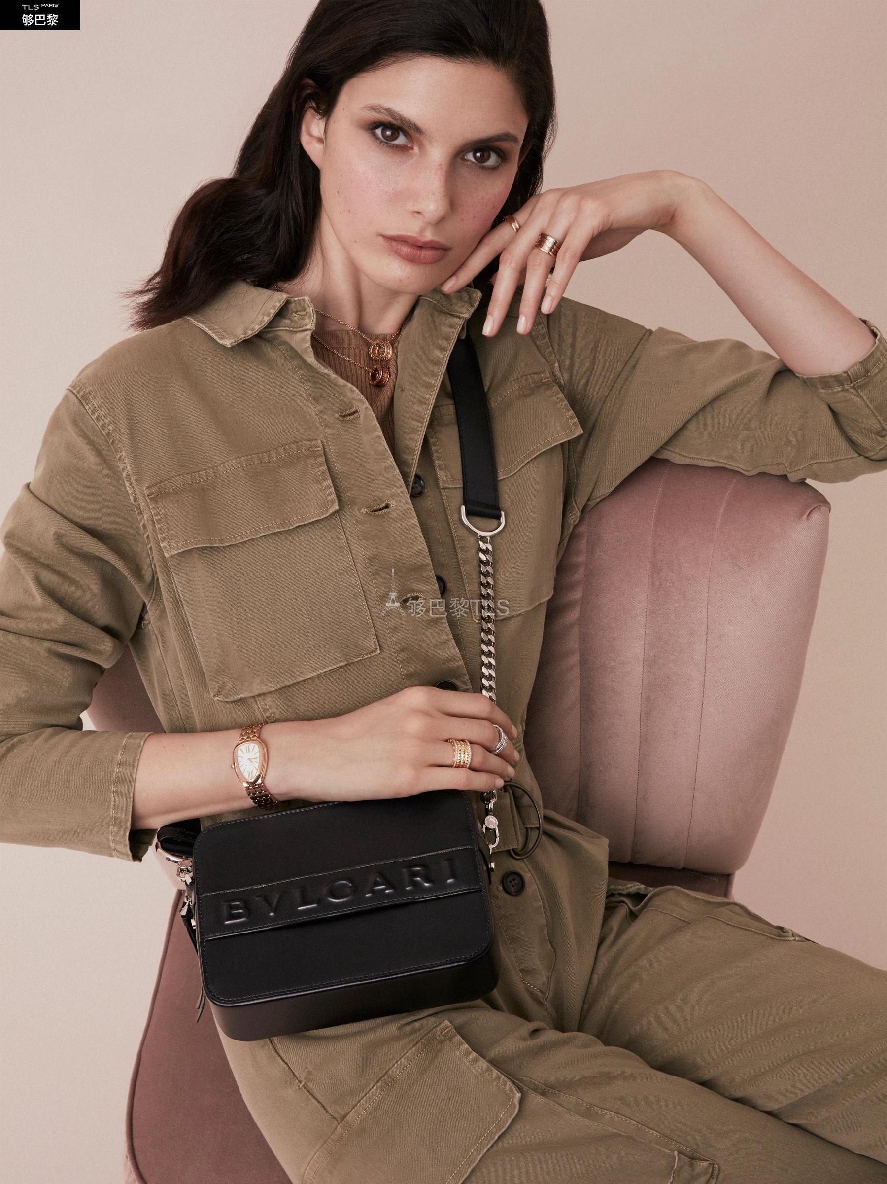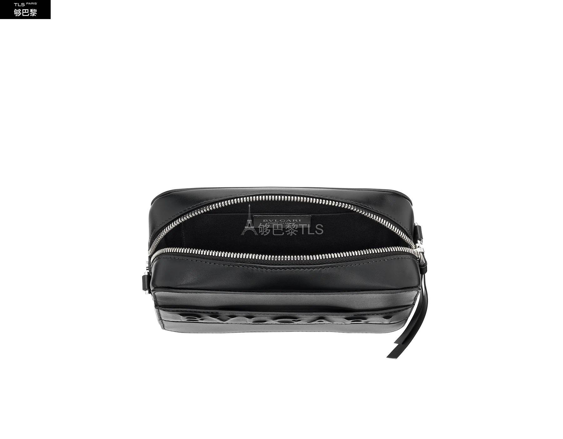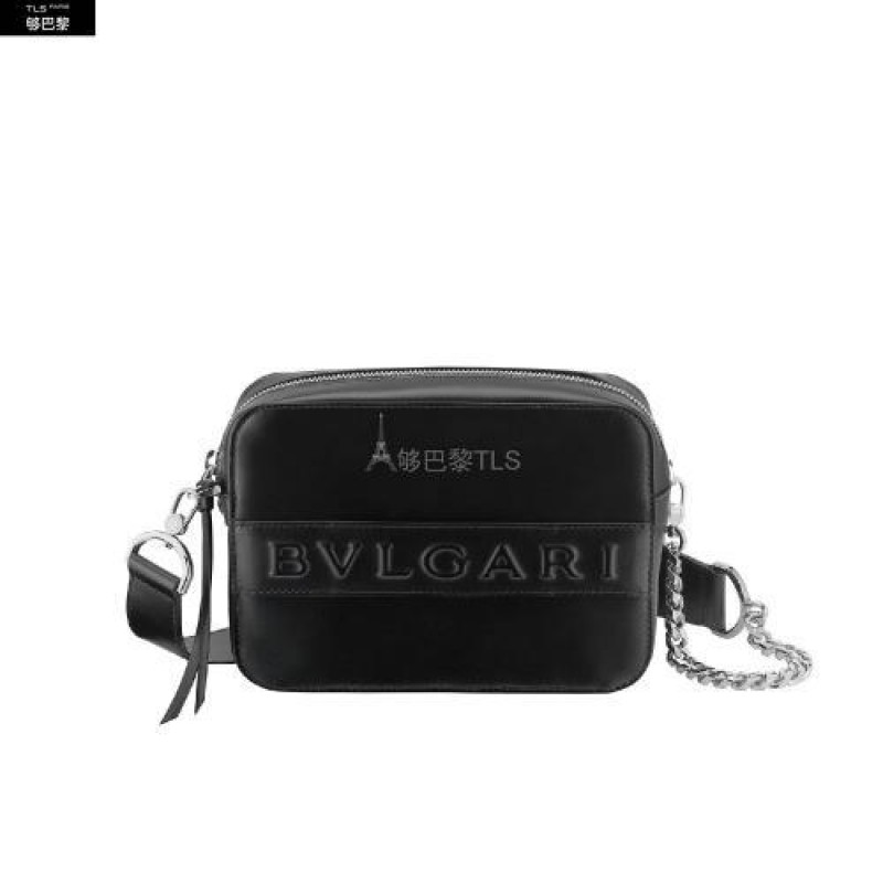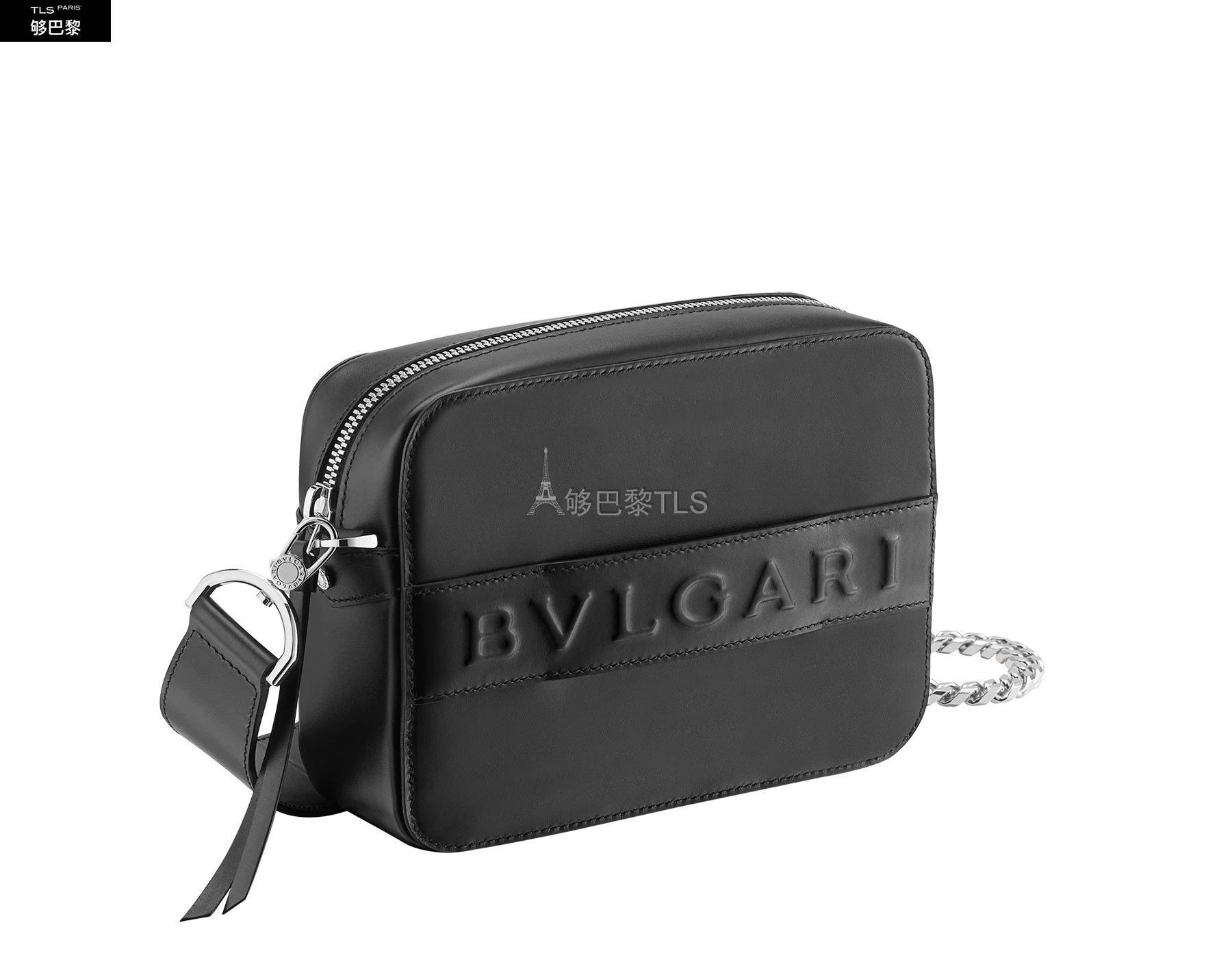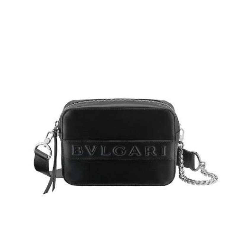 Nouveau modele s’inscrivant dans la tendance logomania, le sac pour appareil photo Bvlgari Logo illustre a merveille le style contemporain de la Maison. Ce modele en cuir de veau noir est rehausse de details en laiton. Accessoire ideal d’un look de jour unisexe, le sac se pare d’un compartiment a soufflet et d’une chaine ajustable et amovible avec bandouliere en cuir pour plus de polyvalence. Une poche ouverte a l’interieur, une poche exterieure et une anse a l’avant avec logo Bvlgari en relief permettant de fixer de petites pochettes completent l’ensemble. Petit modele dote d’une plaque en cuir ornee du logo Bvlgari. Dimensions : 19 x 13 x 6 cm.