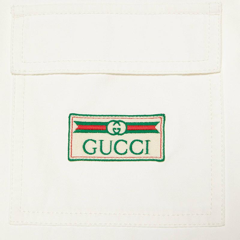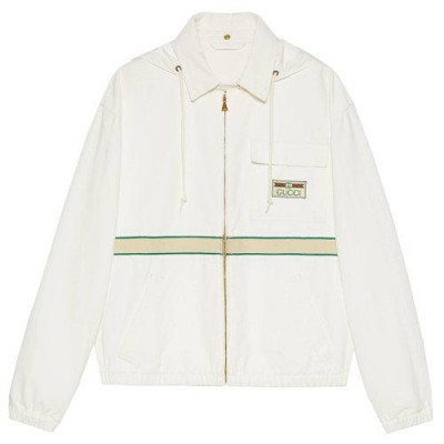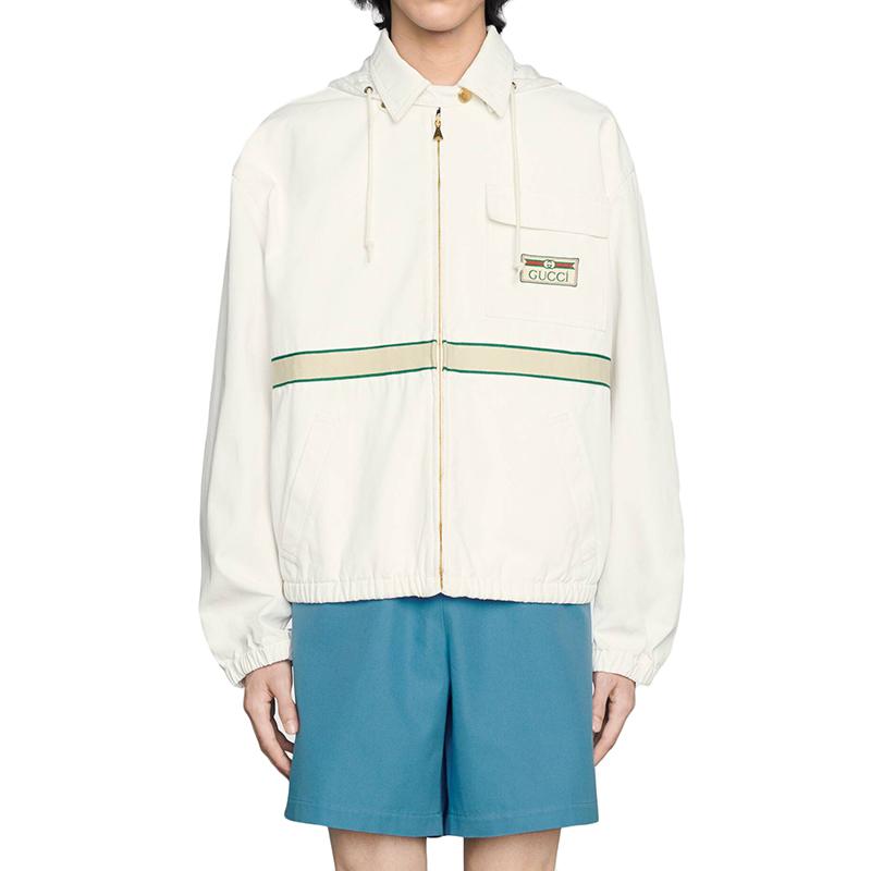 【包税】GUCCI/古驰 21年早春新款 男士白色带有复古标签的环保棉夹克655708XDBPZ9692