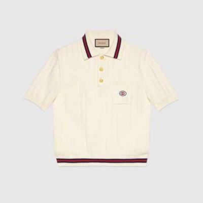 【 Pre sale 】 GUCCI/Gucci Knitted Cotton Strap Short Sleeve Sweater Cream White/Red Blue Stripes 653624 XKBUR 9182