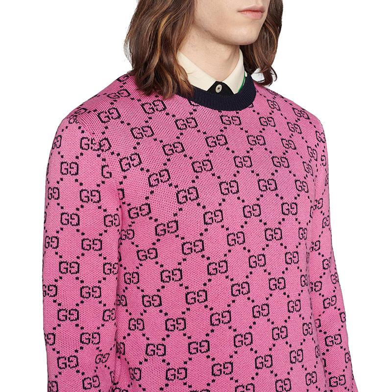 【包税】GUCCI/古驰 2021年新款男士粉色羊毛/棉质毛衣 661174XKBXI5152