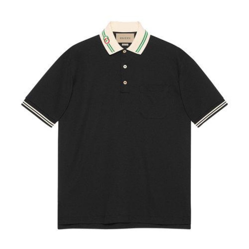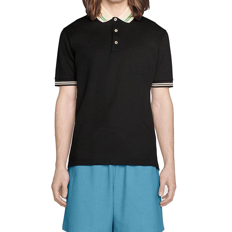 【包税】预订款1-2周 GUCCI/古驰 2021年新款男士黑色棉质polo衫 658067XJDI21043