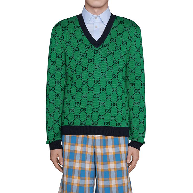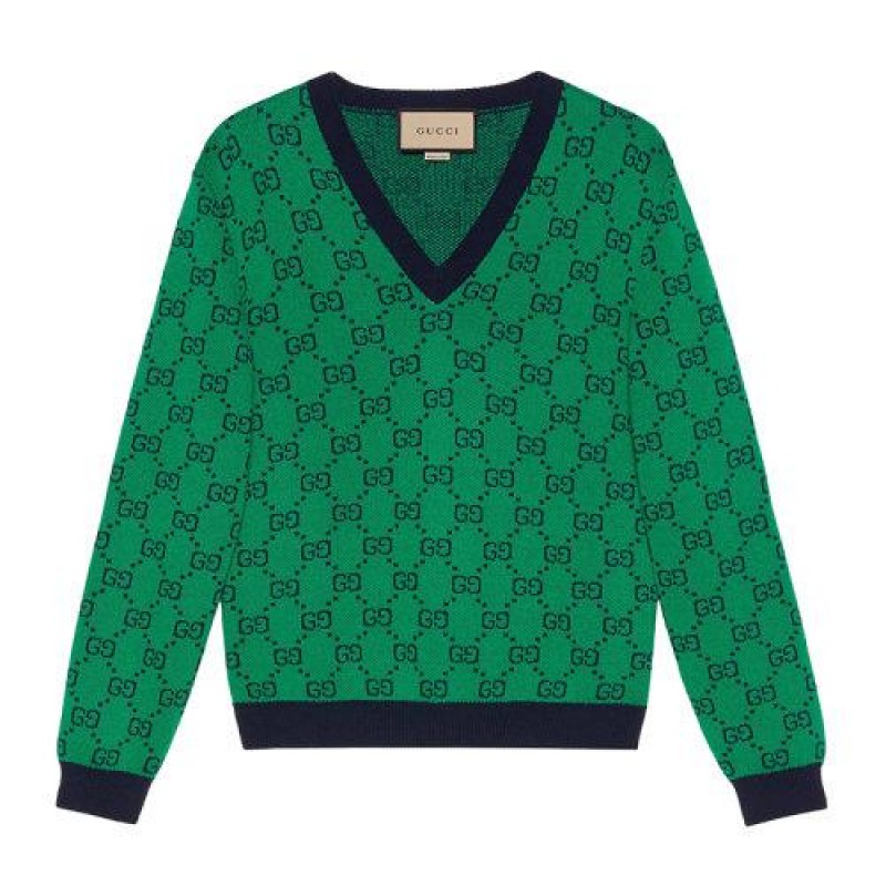【包税】GUCCI/古驰 2021年新款男士绿色V领羊毛毛衣 661155XKBXI3465 $1114.3 |