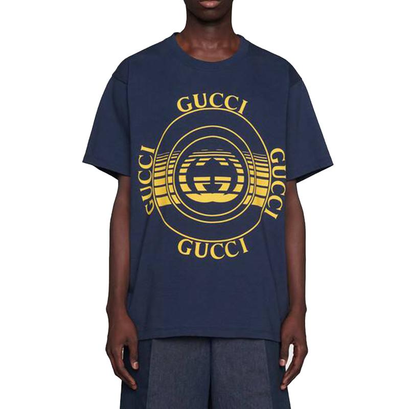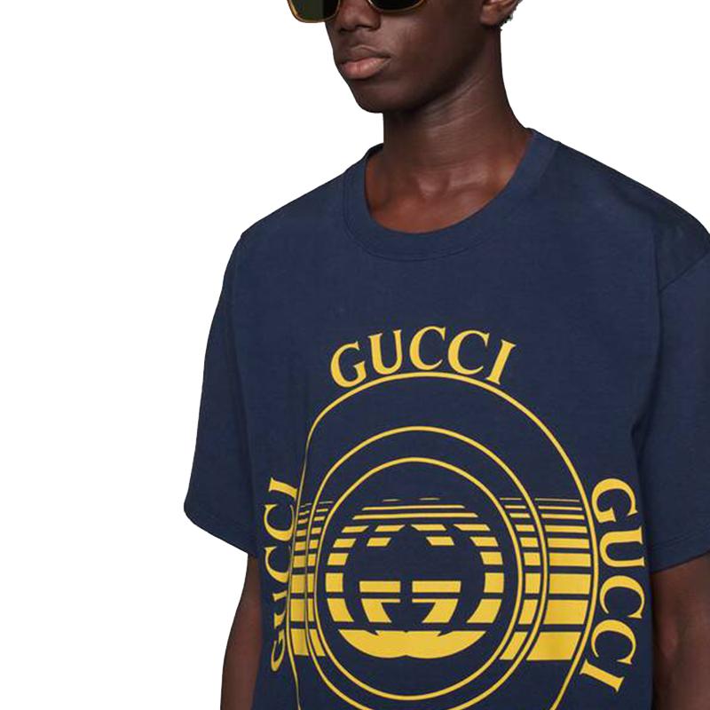 GUCCI/古驰 男士短袖T恤唱片印花超大造型T恤 616036-XJCSQ