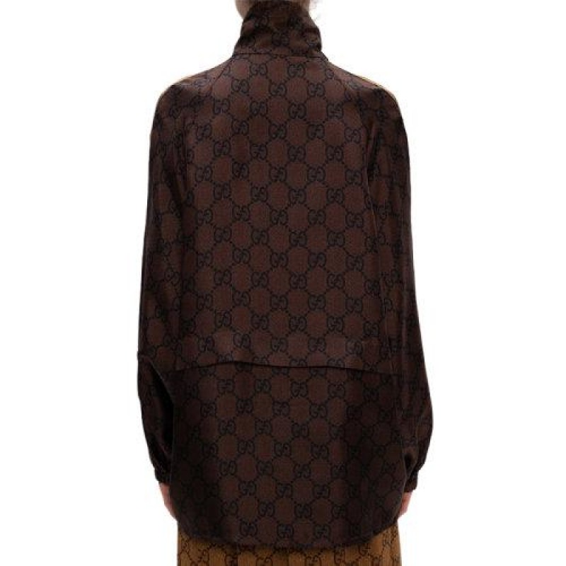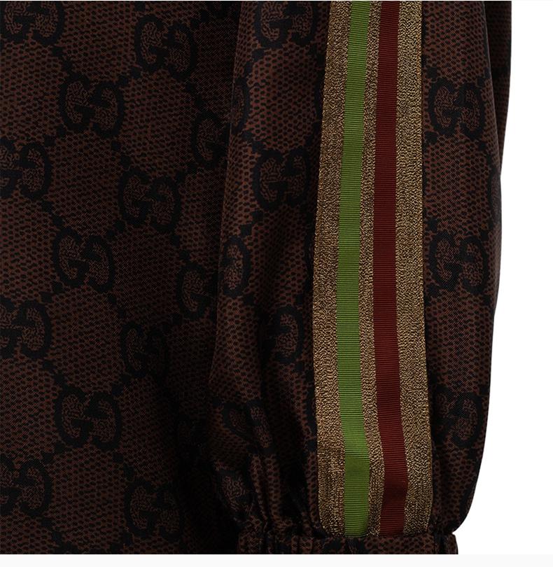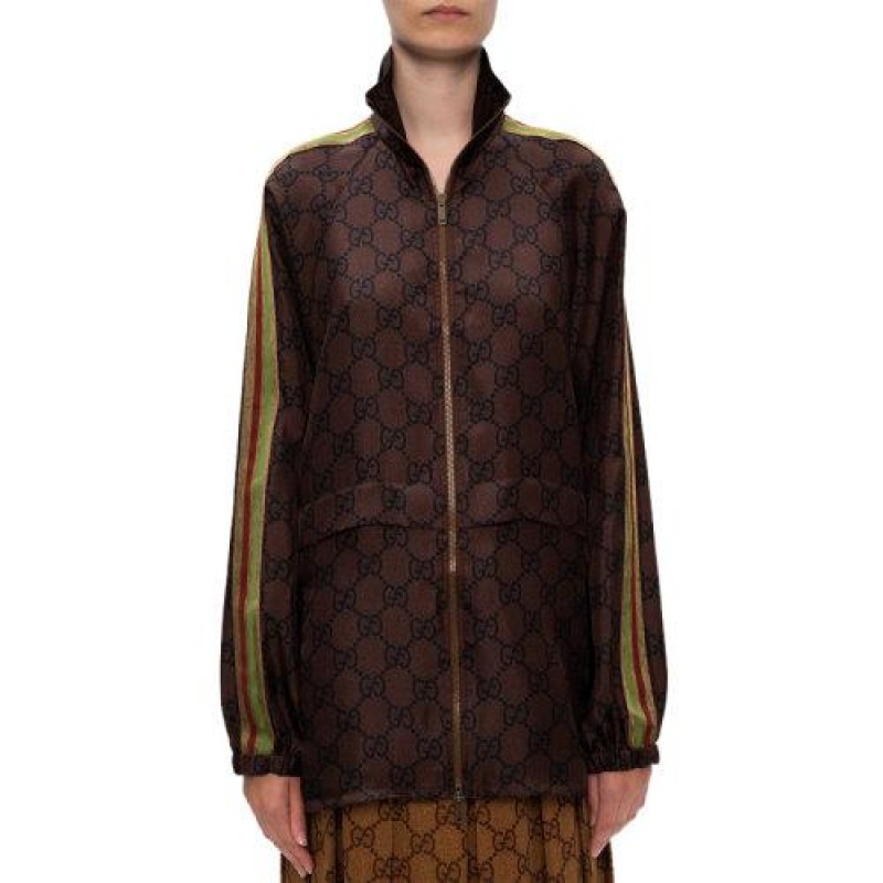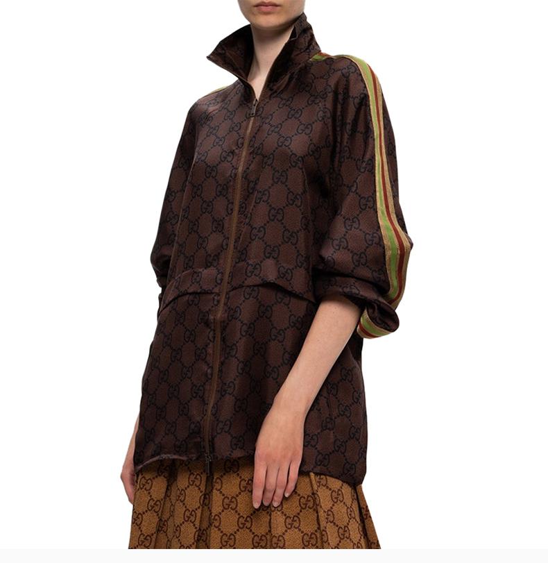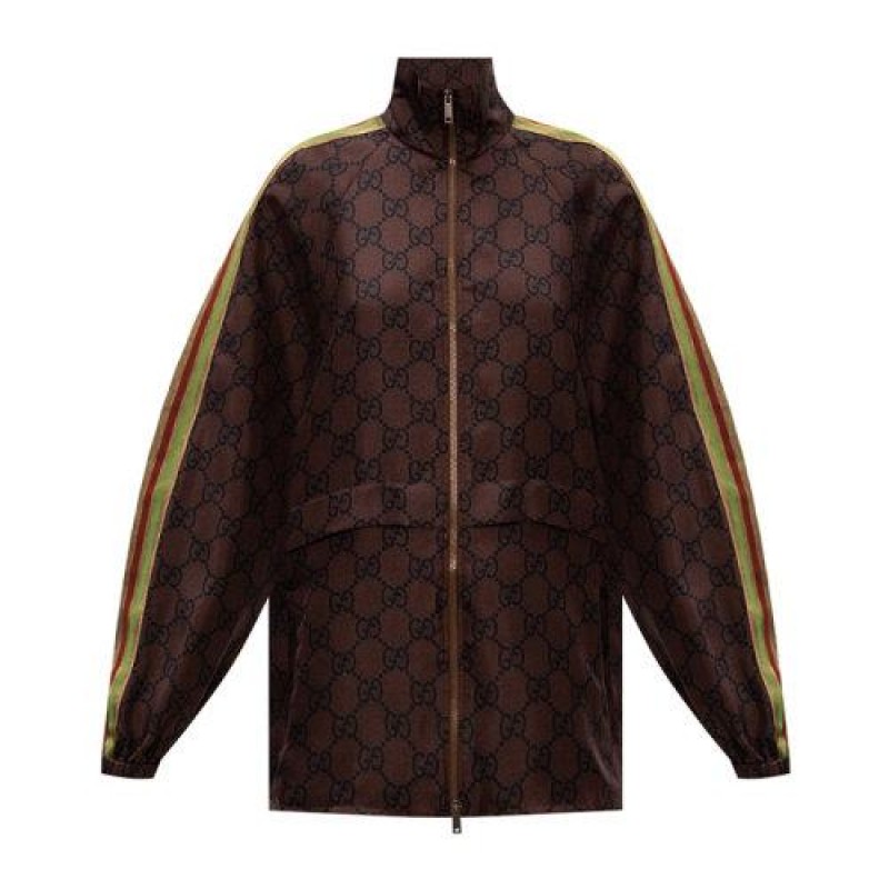 GUCCI 古驰 男士 服装 21春夏 棕色老花格纹立领拉链丝质外套夹克 男士夹克