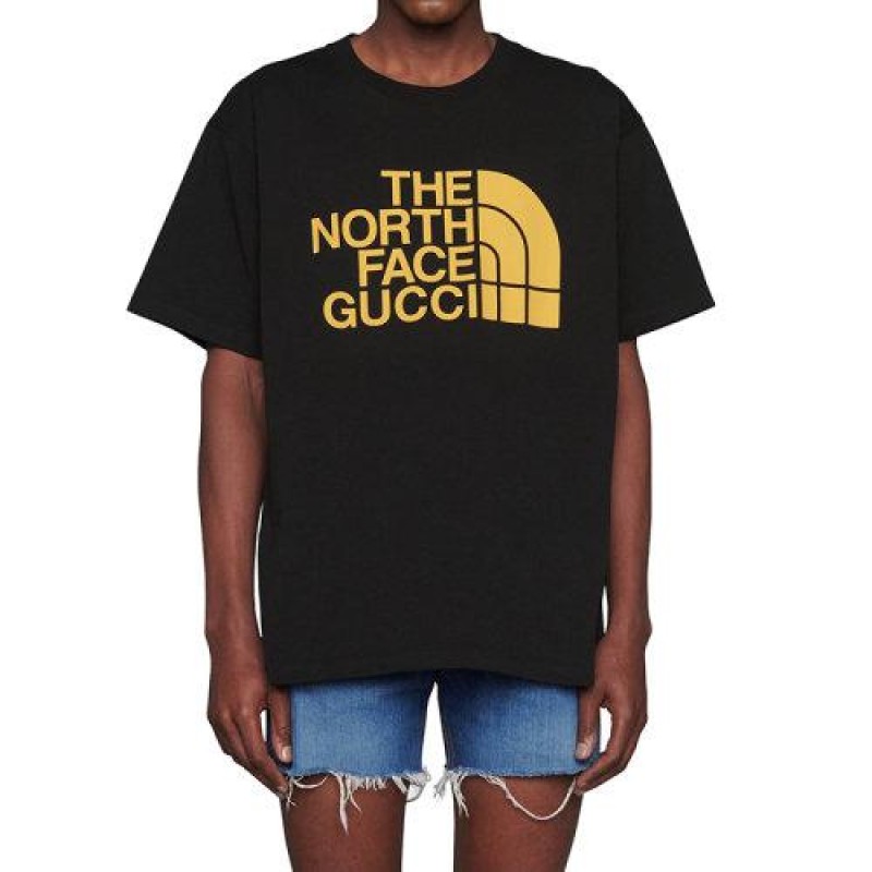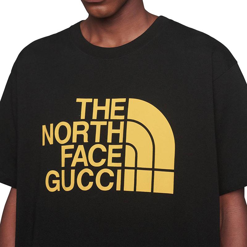 【 Tax included 】 Pre order 1-2 weeks GUCCI/Gucci 2021 Spring/Summer New Collection North Face x Gucci Series unisex black frosted pure cotton plain knit T-shirt 616036XJDCL1131