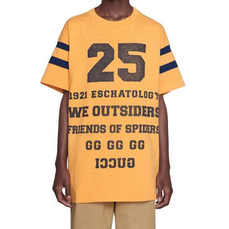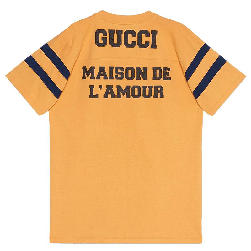 • 黄色棉质厚实球衣,带有蓝色“ 25 Gucci Eschatology”,“蜘蛛之友”和“ Love House”印花