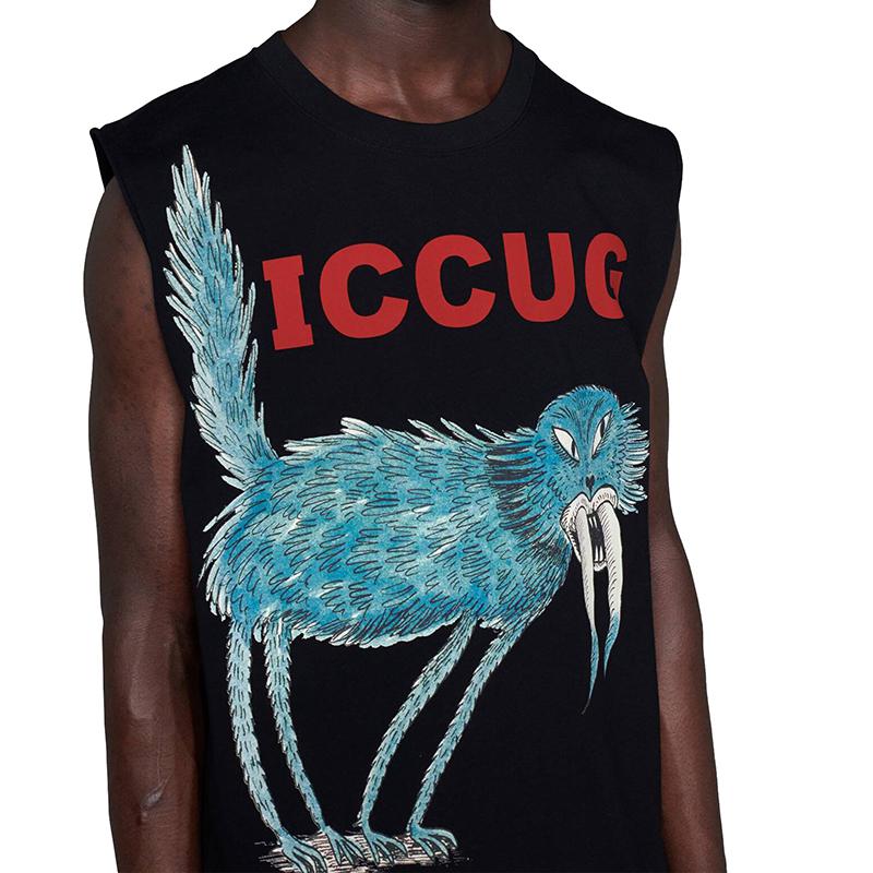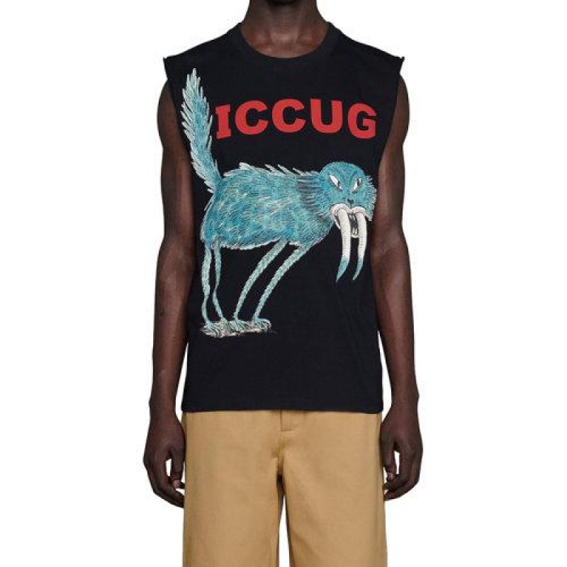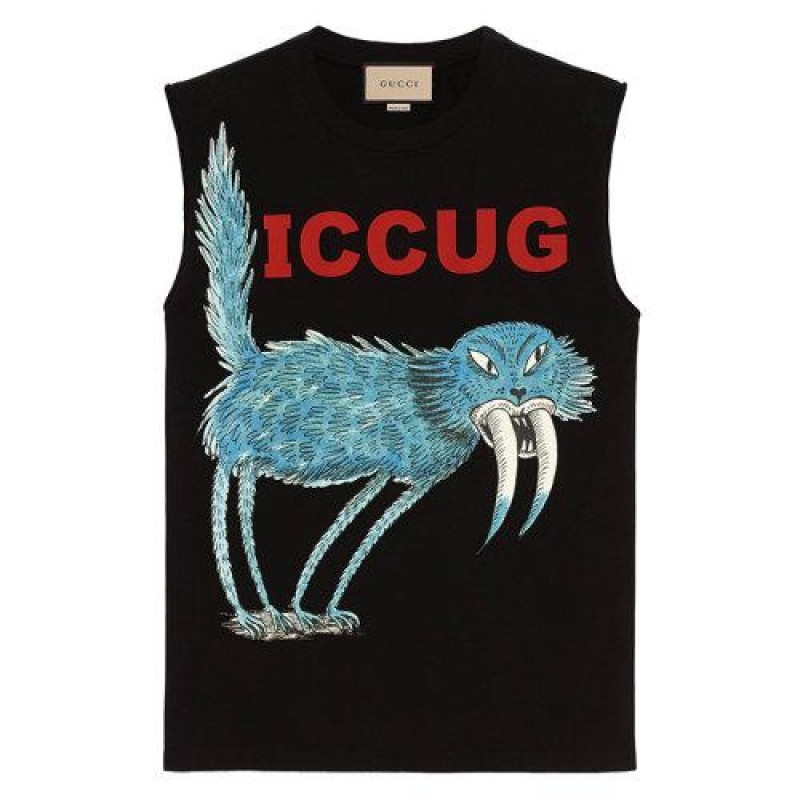 【包税】GUCCI/古驰 21年春夏新款 Freya Hartas系列 男士黑色棉质动物印花背心655460XJDHL1043