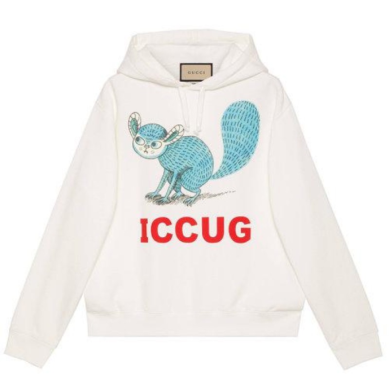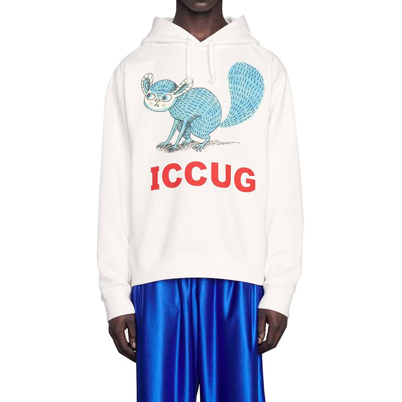 【包税】GUCCI/古驰 21年早秋新款 Freya Hartas系列 男士白色棉质动物印花卫衣646953XJDJR9095