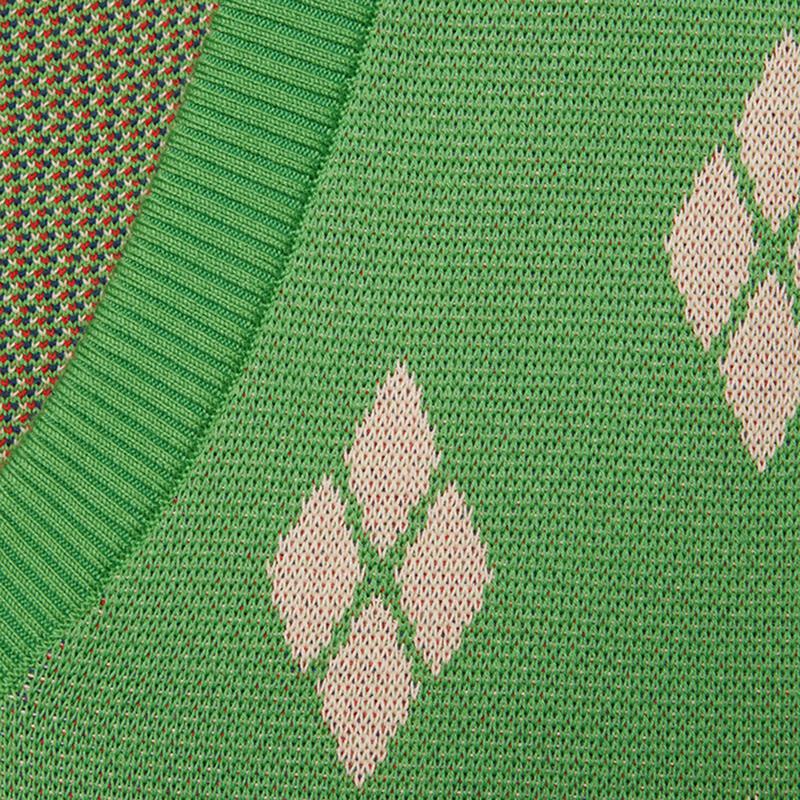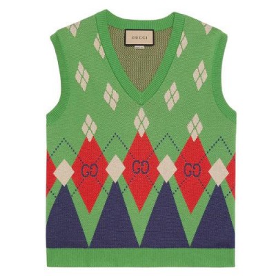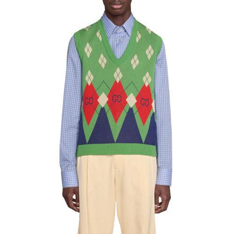 • 绿色,红色,蓝色和象牙色Argyle GG羊毛针织
