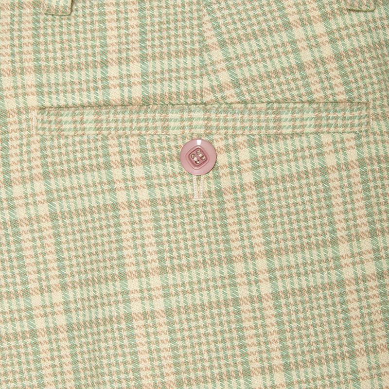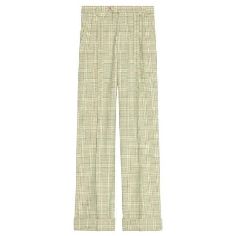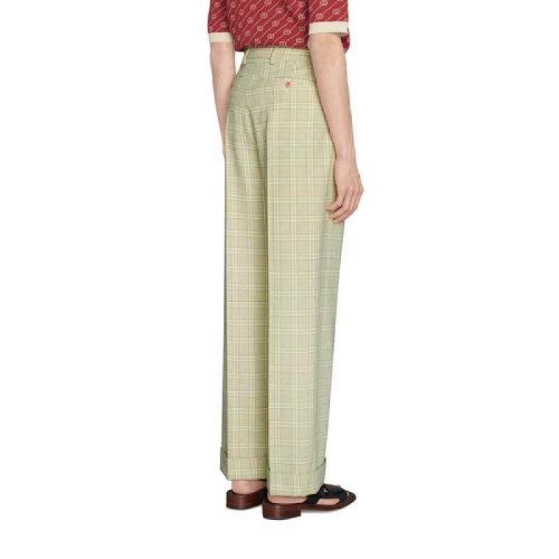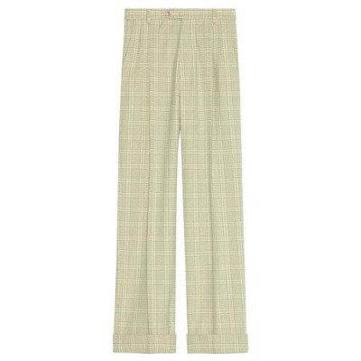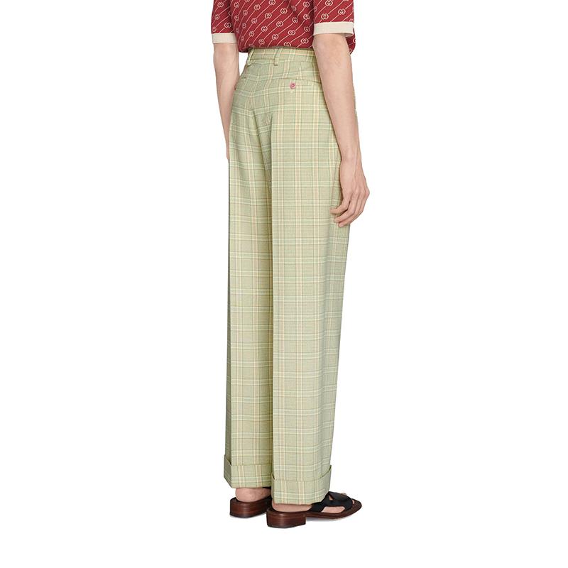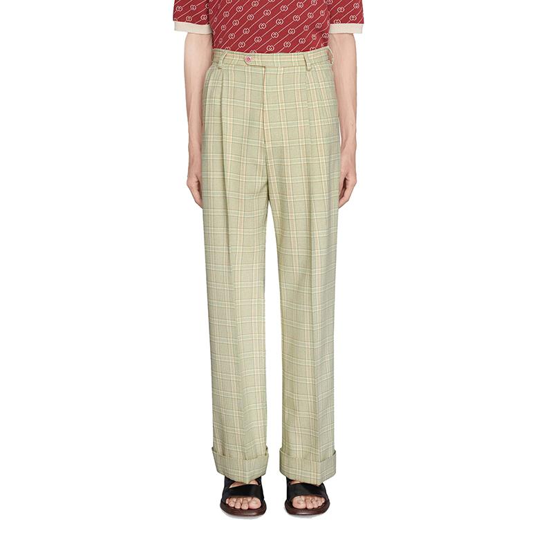 【包税】GUCCI/古驰 21年早秋新款 男士米色和绿色格子呢图案羊毛混纺长裤653360ZAFVF9672
